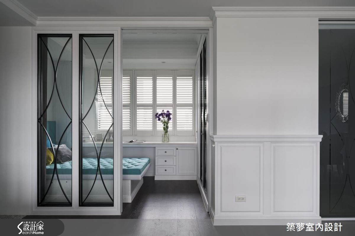 客、餐廳之間以半高的雙面牆體取代隔間牆,一面為電視牆,另一側成為備餐櫃,加強收納機能;而半高的隔間技法界定出領域機能,同時創造出流暢的雙動線,讓光線恣意照進空間各個角落,不被阻隔的良好通風形塑流動感的生活氣息。面臨狹小的烹調空間與廚房入口阻斷通道,所造成的動線不便,設計師將格局予以重整後,以透明的玻璃門取代制式隔間,延伸視感的放大效果,展現大宅氣度,並拉出一間多功能室,滿足實用的機能訴求。