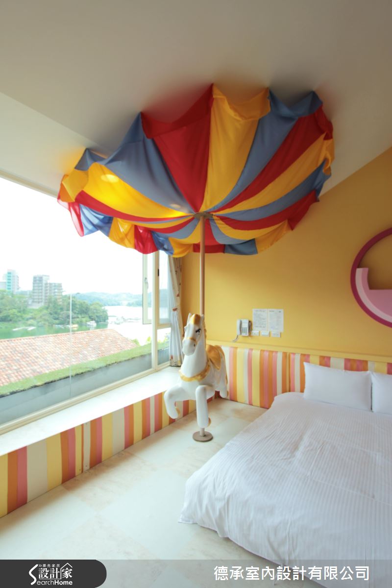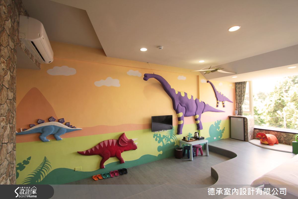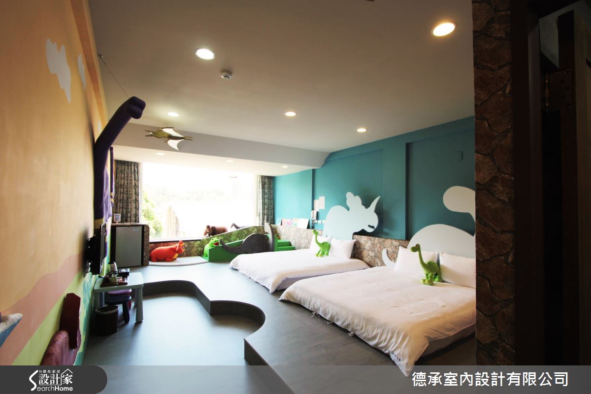 設計師以「恐龍」、「遊樂園」、「漁夫」、「森林」等四個主題,為空間賦予精彩故事。沿著廊道的腳印,來到有許多恐龍的寬敞大房間,以水藍色襯托清爽的空間質感,而立體的浮雕設計讓恐龍還能向門口探頭,熱情迎接下榻的旅客。遊樂園主題房特別在房內裝設孩子最愛的旋轉木馬和可乘坐的摩天輪,活潑繽紛的糖果色調,勾起大、小孩的甜蜜童年回憶。而森林及漁夫房也十分特別,以溫暖木色調及特色軟件佈置分別表現出蓊鬱大樹和滿載漁獲的漁人印象,讓這次的出遊經驗,充滿精彩樂趣。