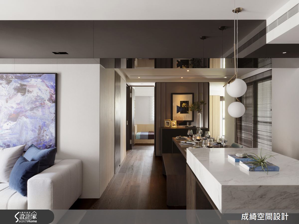 在繁忙的都會裡,我們都需要一處可以卸下煩惱、疲倦的美好淨土,特別是下班後回到家,能夠徜徉在純淨、舒適的生活氛圍裡。這樣的夢想不再遙不可及,此案以乾淨的配色飾底,搭佐高飽和度的軟件布料、簡約中帶點趣味的吊燈與不規則形狀的風格家具,還藉由藝術畫作輕灑不羈色彩,替沉靜、內斂的空間增溫添色,挹注活潑、生動的氣息。