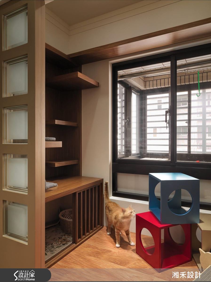 設計師特別為屋主愛貓配置遊戲間,以和室格局為主,加入陽光、貓跳板等設計,集美學與機能於一室,讓寵物可在此自得其樂!
