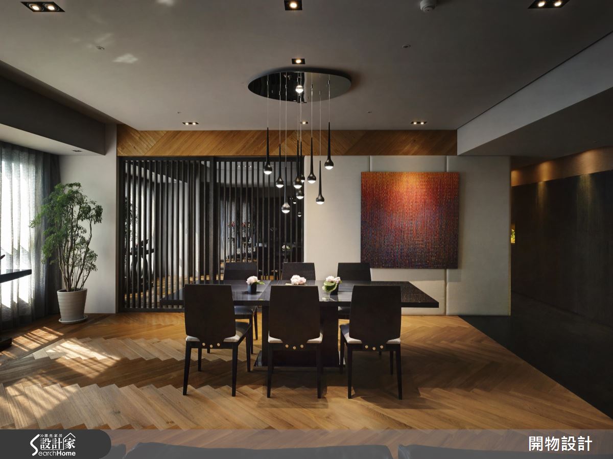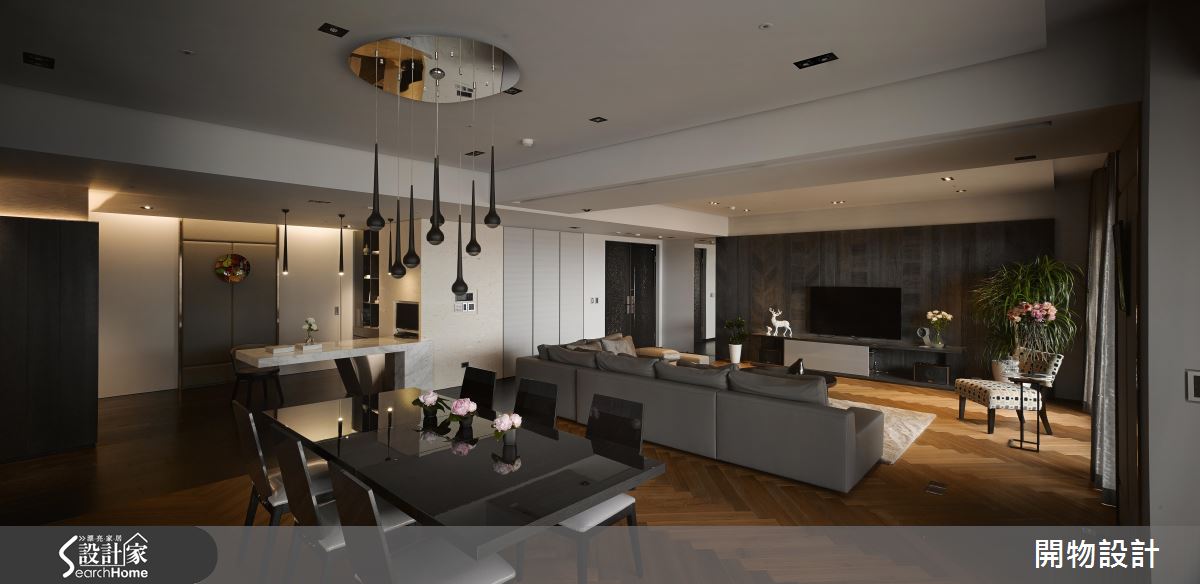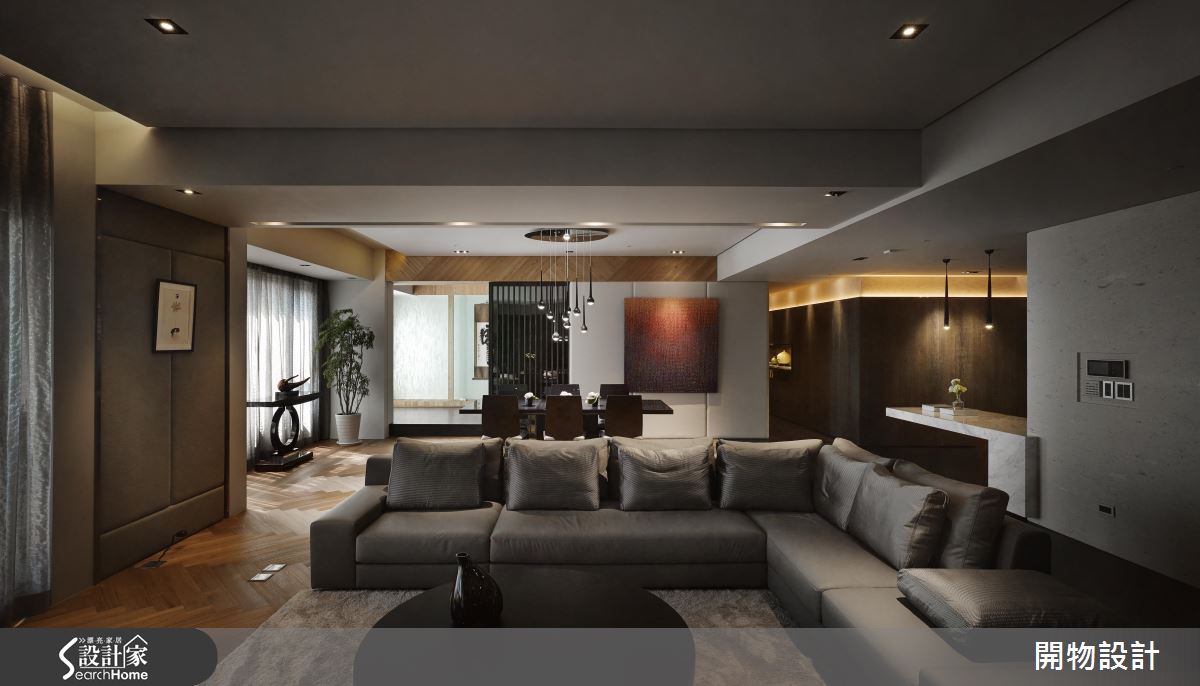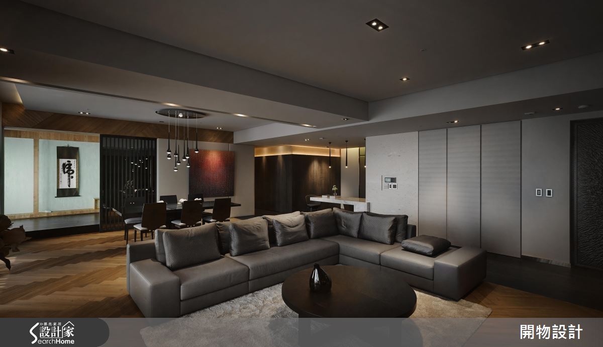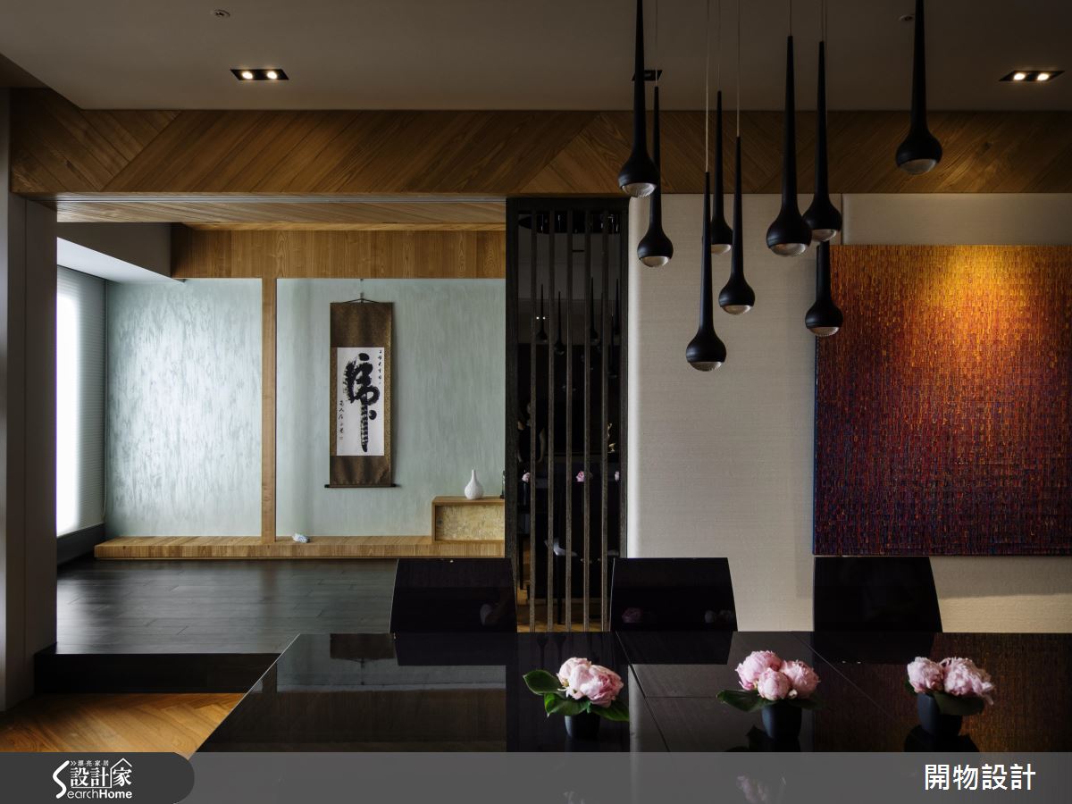 公領域挹注開放格局設計,導引氣息與採光的流動,並除去制式隔間劃分,讓場域之間化零為整、綿延相連,運用樑體及塊面的延伸,讓材質之間轉化為不同色塊拼接,搭佐線性的細緻修飾,創造視覺上的立體層次;材質上,選用深淺分明的色調,讓石材、木紋、壁布等相得益彰,襯以溫潤人字拼木地坪的大面鋪底,交織出沉穩不失雍容的氣質,並巧妙透過紋理的轉換,界定出不同領域範圍,在串聯之中、亦明確勾勒出自在的使用動線;和室內則妝點禪風字畫,當門片敞開時,即與一旁的餐區藝術畫作形成對話,無形中平衡了現代作風與東方寧靜,展現巧妙的對應!