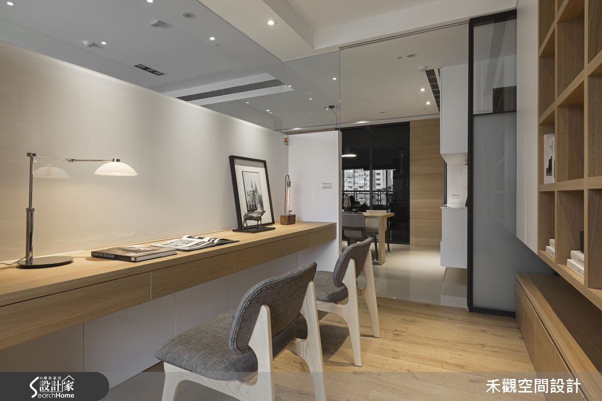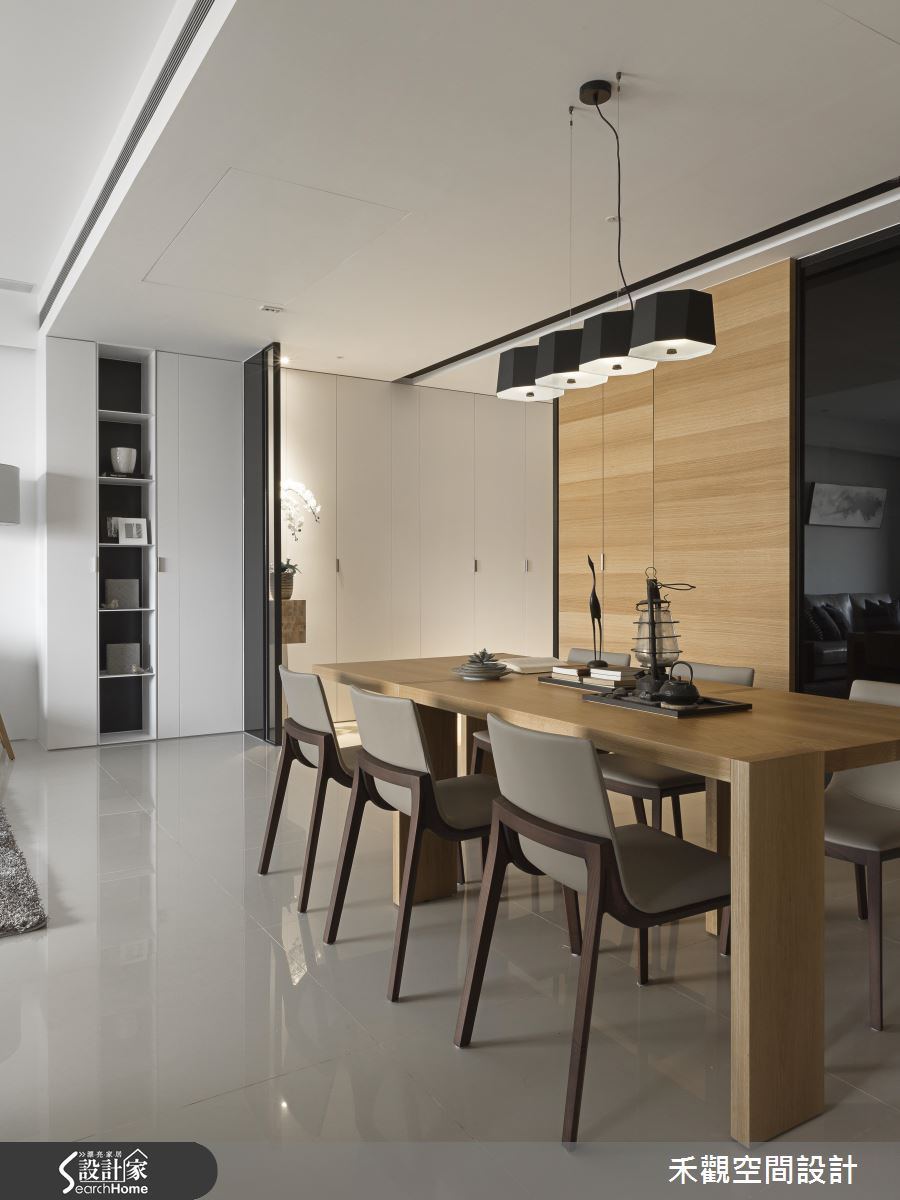 廳區注入大面積的白色調,並結合其他材質如大理石、木素材、壁紙等,緩解冰冷俐落的現代風調性、帶出些許生活溫度,並藉由大片窗景的配置,將室內外視線予以串聯,加上餐廚區、書房的推拉門元素,以通透材質瓦解場域之間的隔閡,創造開闊延展的視覺尺度,而大多數的收納均隱於無形或化為展示,讓屋主喜好的紅酒、器皿、書籍等各得其所,搭配造型燈具、掛畫等做出點綴,在簡單基底之中創造亮點,彰顯屬於這個家的味道;回歸臥室部分,則以沉穩灰階色調為主,並落實清爽乾淨的量體規劃,闡述沉靜好眠的氛圍!