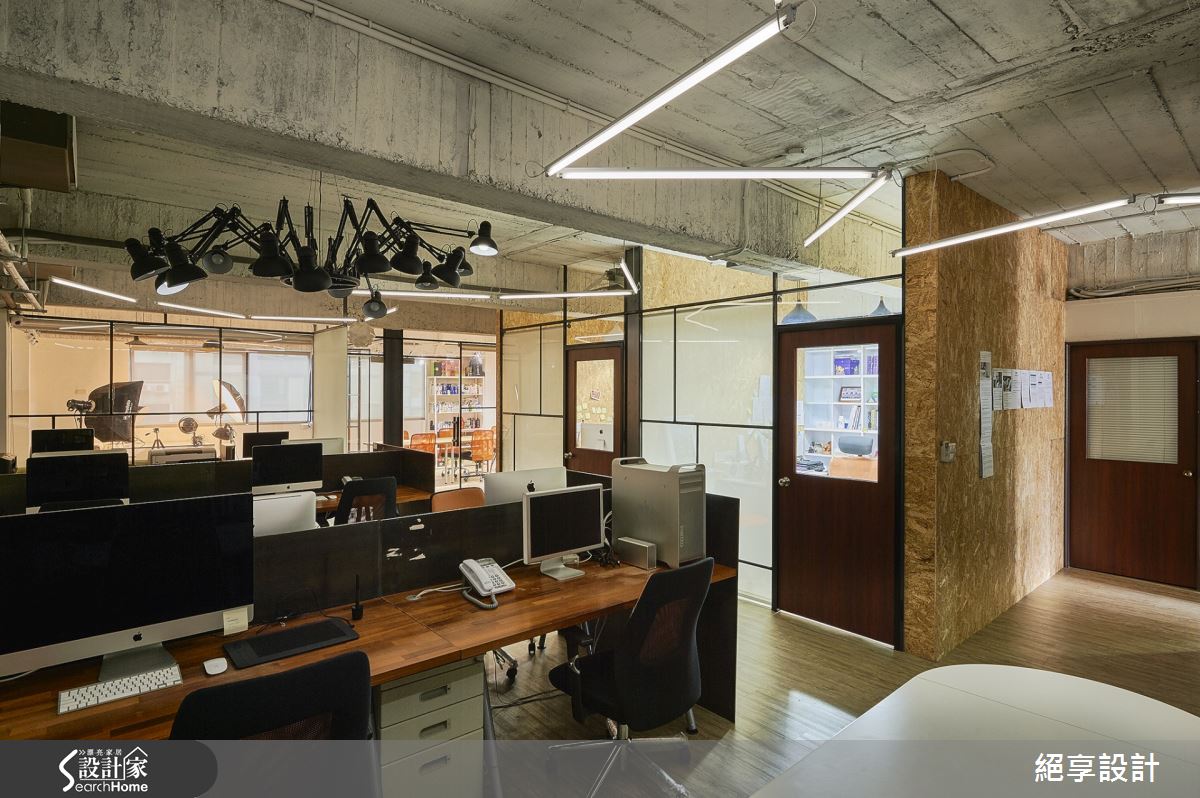 雜誌或網路上出現的粗獷、不加修飾的工業風,現在也能成為每天上班的辦公環境,讓人好想在這裡工作!為了達到不過度裝修、舊物能夠回收再利用,以及創造出彈性的空間運用,設計師特別選用原始質材做為空間基底,玻璃隔間的安排讓光源自然遊走於室,照亮裸露的建材肌理,醞釀出loft的自然與懷舊氛圍。