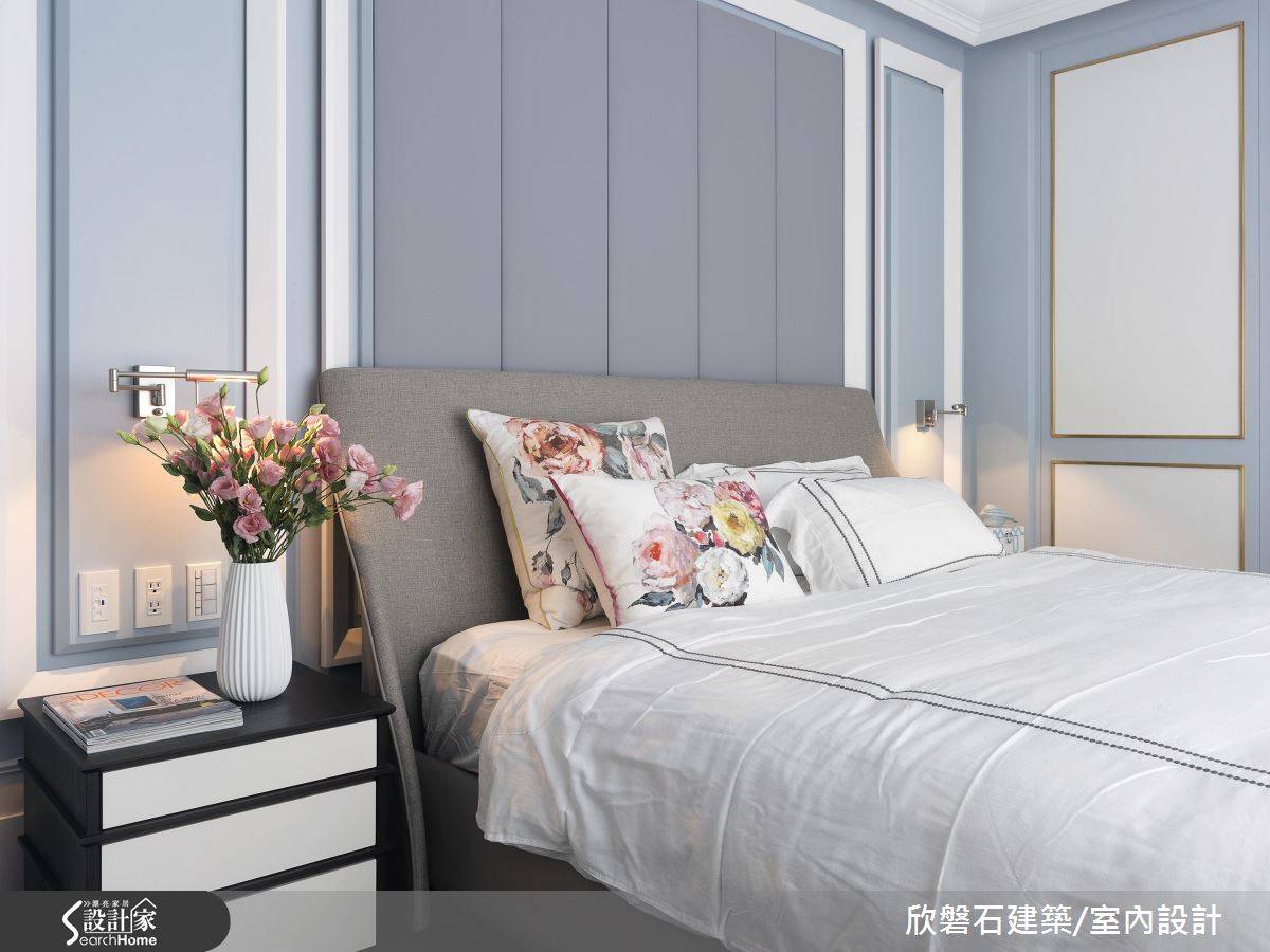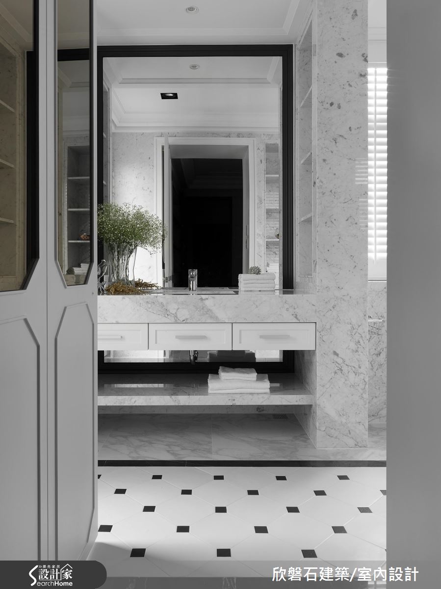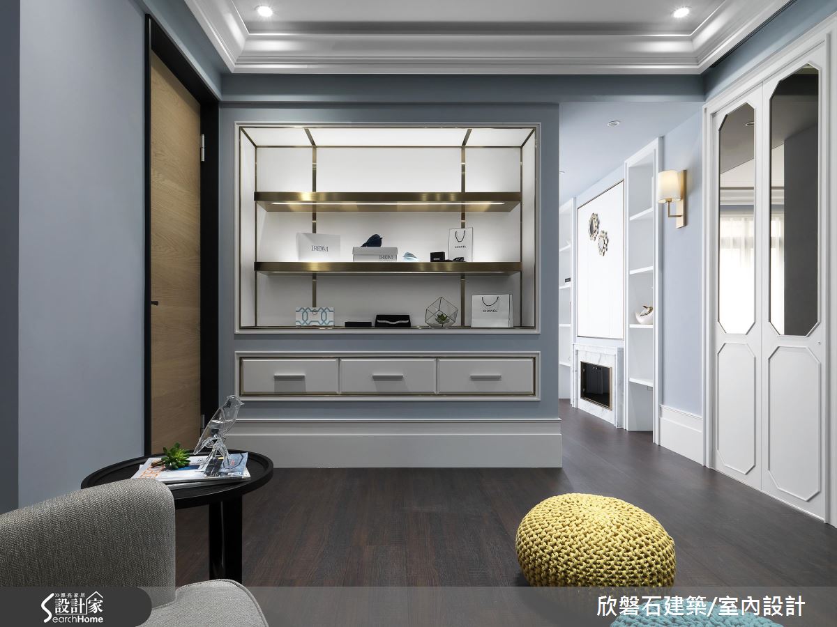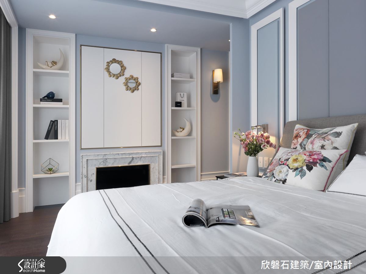 雖然喜歡優雅的古典風,但屋主夫妻卻擔心如果採用繁複的設計方式,會讓家裡變得難清掃,因此設計師捨棄線板圖騰花樣,改以簡潔俐落的線條,凸顯大理石、灰鏡、鈦金等材質的精緻質感,並運用夢幻銀藍色與純白營造出浪漫舒適的氛圍,完美達成屋主的期待。