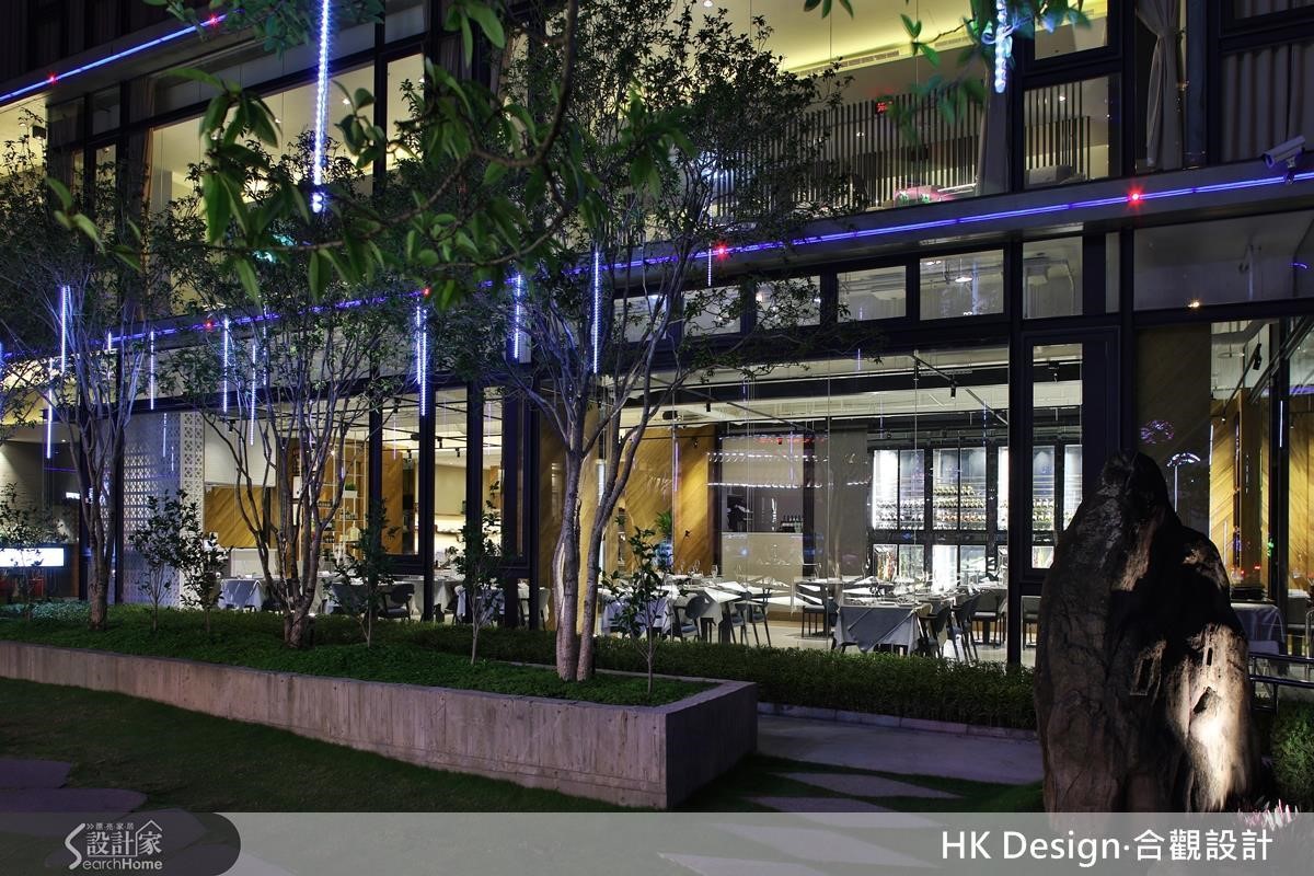 建物外觀給予通透規劃,使室內外視野相互連結,並運用現代建材包含玻璃、鐵件等,佐以時尚燈光點綴,局部則疊砌中式窗花語彙,將現代、傳統元素結合,藉著材質與燈光的完美演繹,將餐廳化為街景上的醒目地標,引領多元日夜景觀。