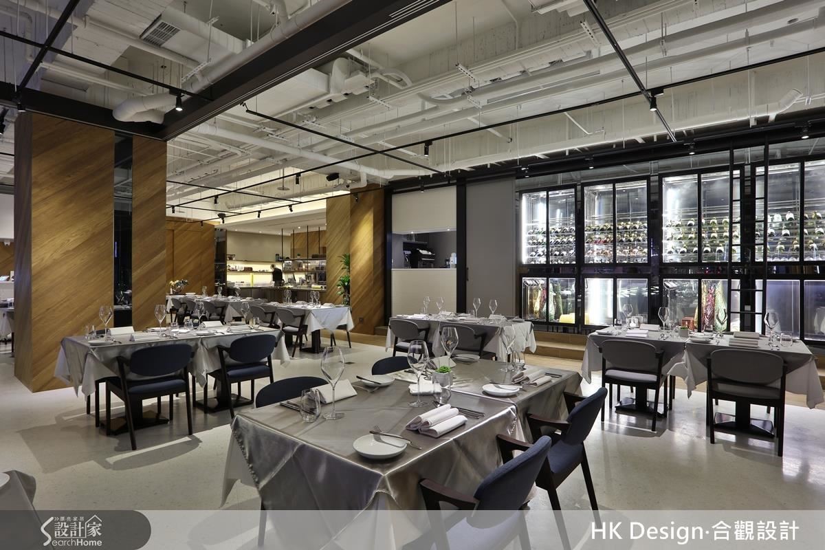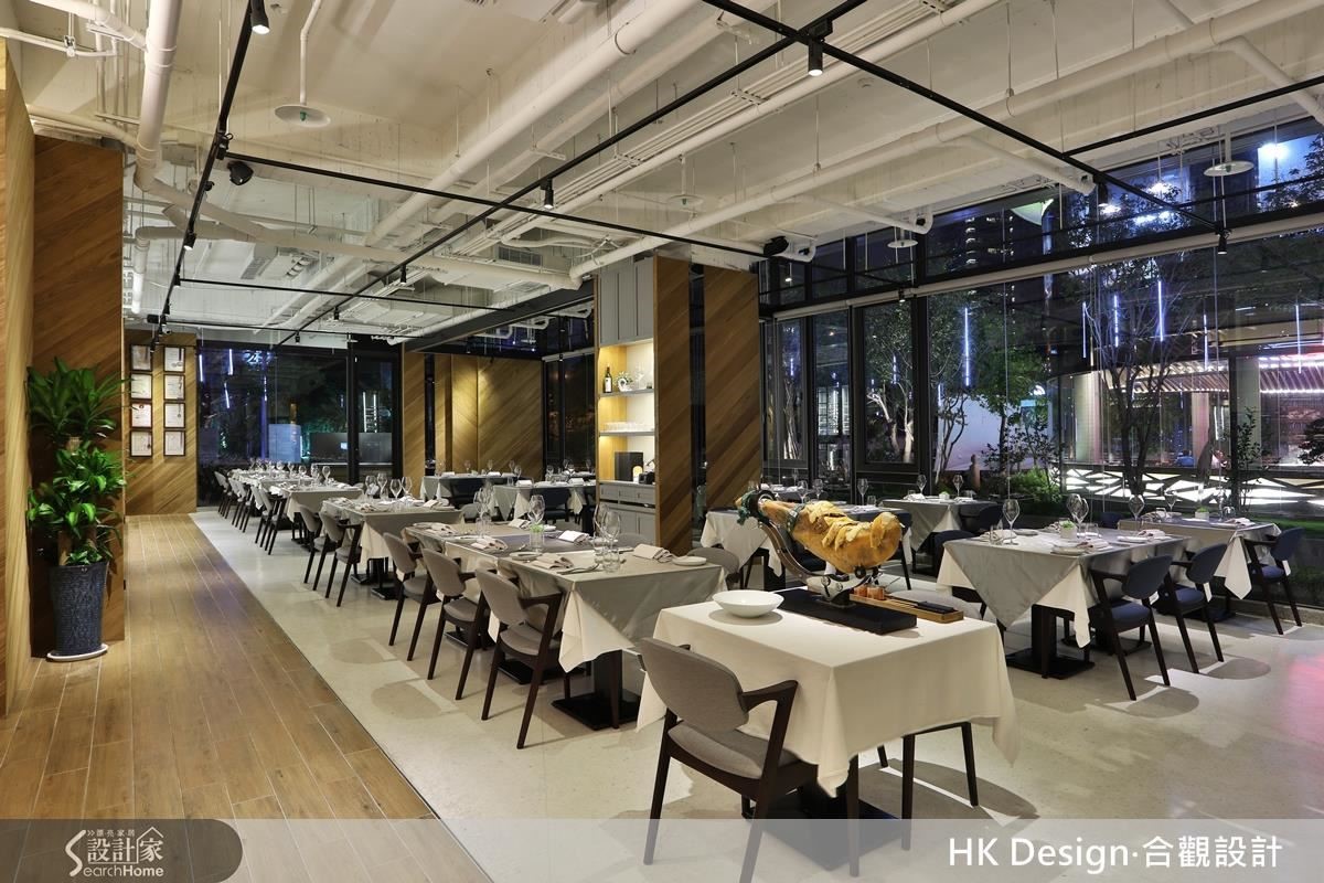 在開放環境中,以懷舊感磨石子地板與溫潤木質相拼接,透過材質差異做出動線導引,且注入白色的明亮基調,刻意於天花板裸露管線、刻劃 Loft 語彙,醞釀出與傳統法式餐廳有別的昏暗空間印象,充滿新意且獨具風格。