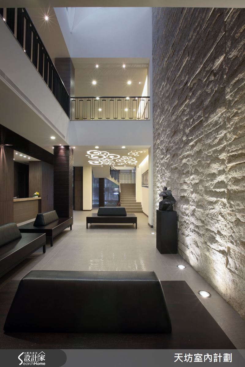 空間使用許多粗獷石材、溫潤木材,再結合燈光表述材質特性,衍生藝術風範!