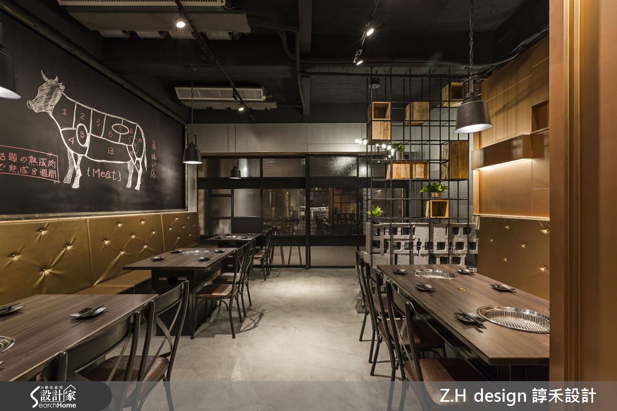 55 坪的長型老屋幾經轉手,屋況破舊髒亂、水電管線年久失修,設計團隊在預算有限卻需要到位風格的情況下,以平價建材打造業主鍾愛的工業氛圍,讓老屋化身復古時髦燒肉店!