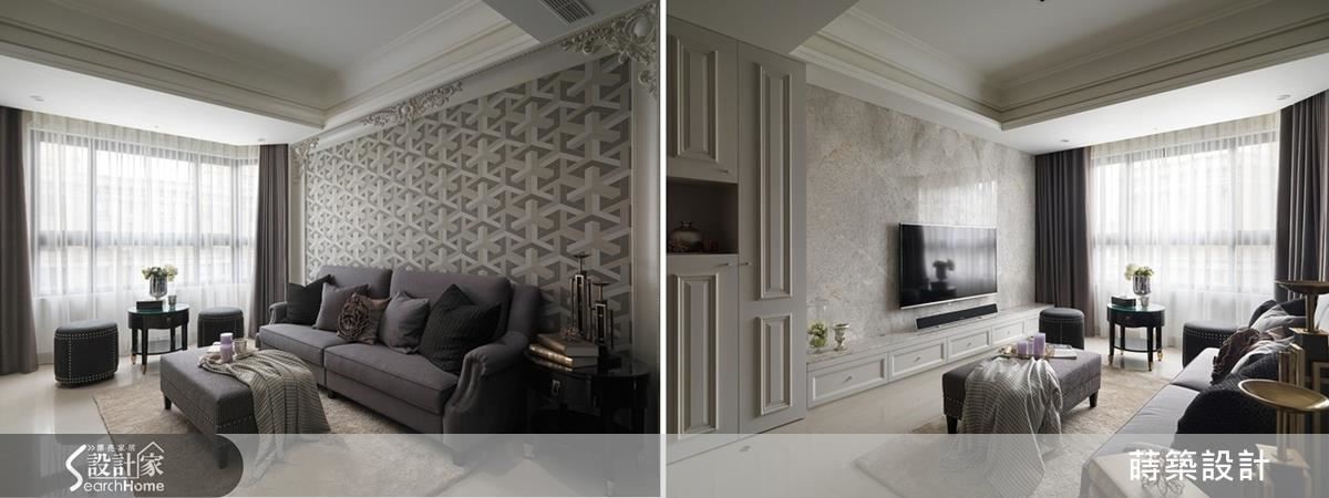 格局的規畫得當與否,對空間感有相當大的影響。本案原為五年多房子不算舊,卻因為設計規畫不當,造成室內陰暗灰黃,比實際屋齡顯得「老」;室內空間 25 坪,很適合小家庭的坪數,卻因為做了過多的裝潢及包覆,白白浪費寶貴的面積,也讓空間看起來擁擠又壓迫。準備結婚的業主繞了一圈,比較過多家設計公司,最後還是鍾情蒔築設計的新古典風格,請蒔築團隊為他們打造別具質感的新婚宅。