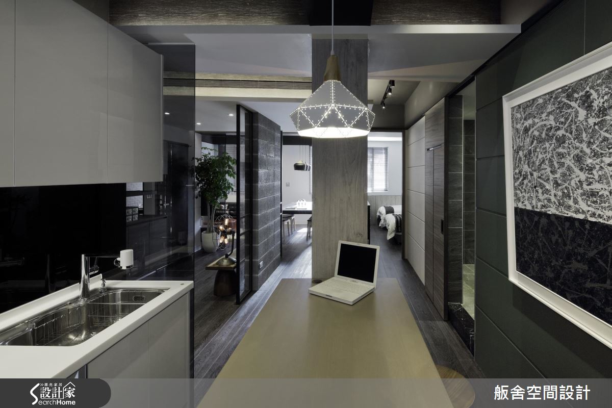 創造廊道的手法是最獨特之處,利用空間的樑柱特性,巧妙做為餐廳、廚房與走廊的界線,並讓工業風的細節裝飾出特色。