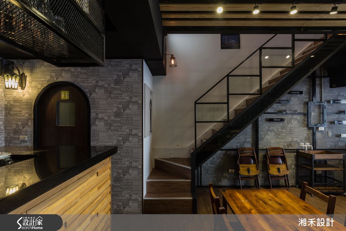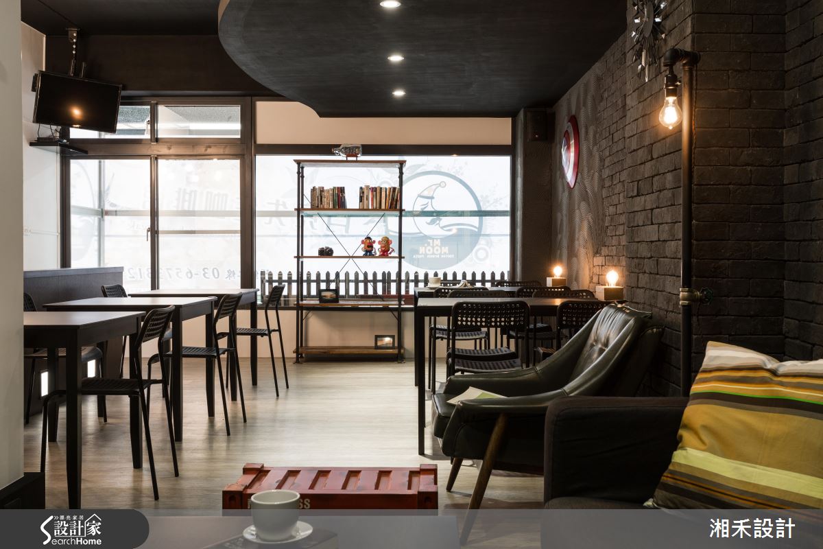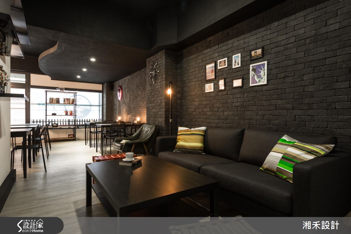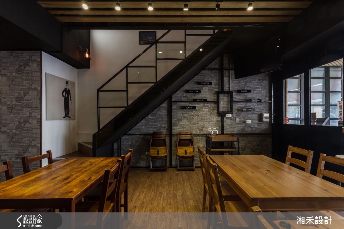 推開大門、步入室內,空氣裡飄著淡淡的咖啡香,戶外暖陽穿透大面落地窗,映照在室內每一處細節,眼睛所及盡是豐富材質演繹的Loft風。鐵件框構出空間象度,局部搭配仿舊的木作,妝點出復古的時代情境;藍綠色調的廢木料鋪陳壁面風情,銜接大面以黑板呈現的菜單,粉筆的塗鴉觸感加上木製桌椅、吧檯的陳列,伴隨暈黃光感的輕灑,調和出有溫度的人文空間;吧檯銜接樓梯處的壁面以街景壁紙串連,圓拱造型的廁所門扇,結合復古質感的壁燈,宛若來到街頭裡的風情小酒館。二樓空間裡創造的立面造型與家具款式,呼應街頭元素,相片牆與繽紛色彩的抱枕,挹注溫馨情誼;壁面利用陳舊質感的文化石舖陳,局部搭以手刮扇型紋理的泥作視覺,調和出粗獷、愜意的風格感受。