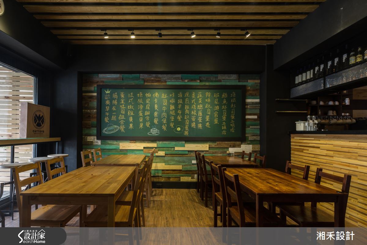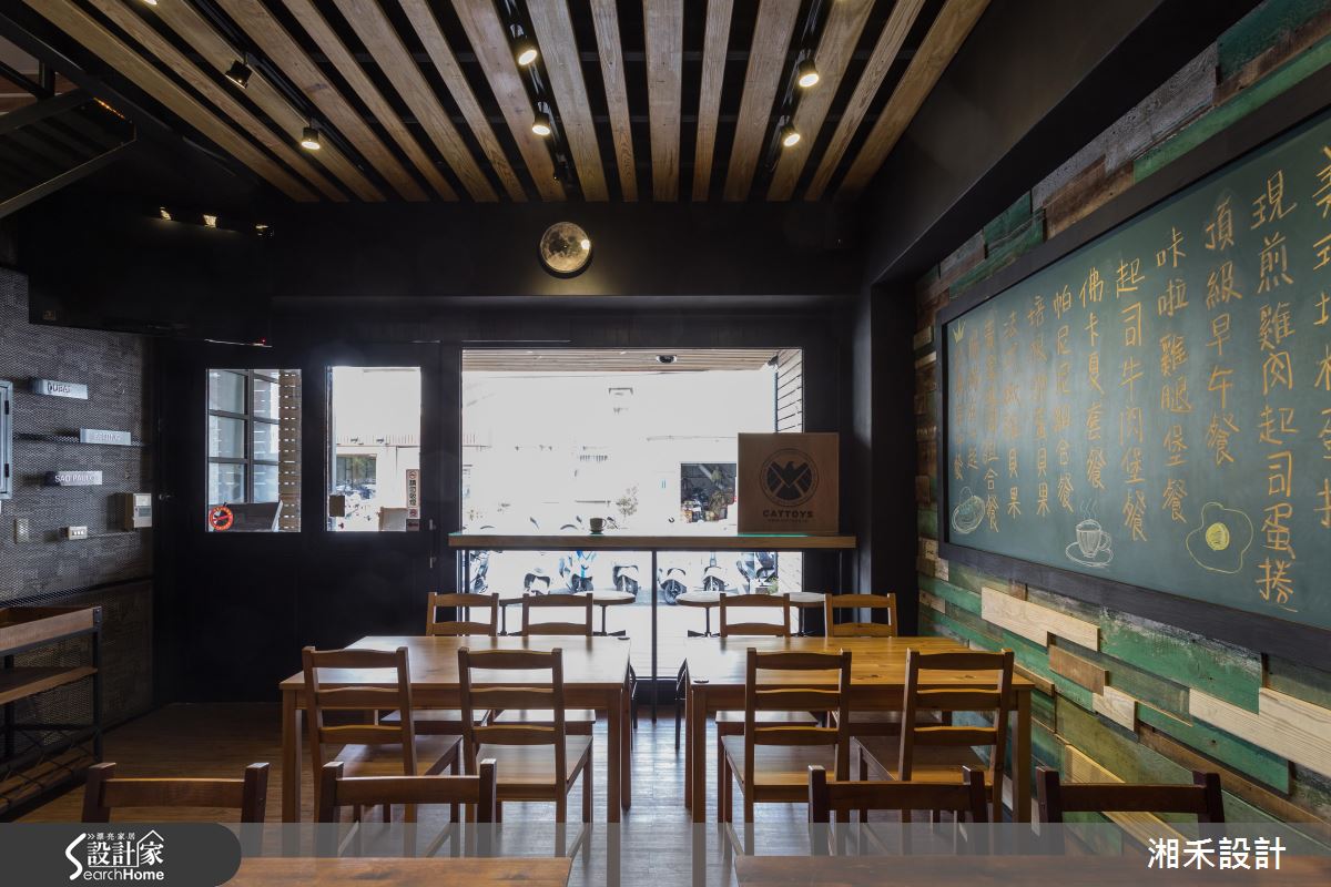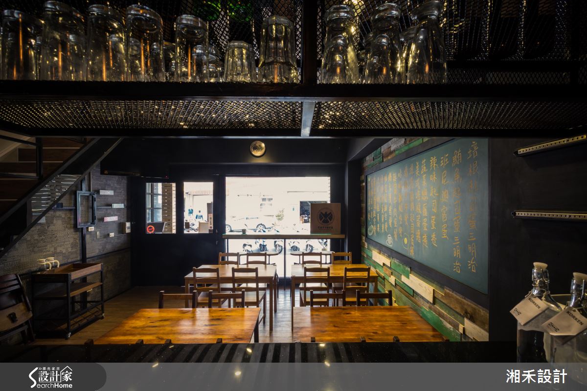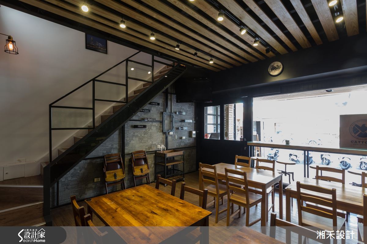 推開大門、步入室內,空氣裡飄著淡淡的咖啡香,戶外暖陽穿透大面落地窗,映照在室內每一處細節,眼睛所及盡是豐富材質演繹的Loft風。鐵件框構出空間象度,局部搭配仿舊的木作,妝點出復古的時代情境;藍綠色調的廢木料鋪陳壁面風情,銜接大面以黑板呈現的菜單,粉筆的塗鴉觸感加上木製桌椅、吧檯的陳列,伴隨暈黃光感的輕灑,調和出有溫度的人文空間;吧檯銜接樓梯處的壁面以街景壁紙串連,圓拱造型的廁所門扇,結合復古質感的壁燈,宛若來到街頭裡的風情小酒館。二樓空間裡創造的立面造型與家具款式,呼應街頭元素,相片牆與繽紛色彩的抱枕,挹注溫馨情誼;壁面利用陳舊質感的文化石舖陳,局部搭以手刮扇型紋理的泥作視覺,調和出粗獷、愜意的風格感受。