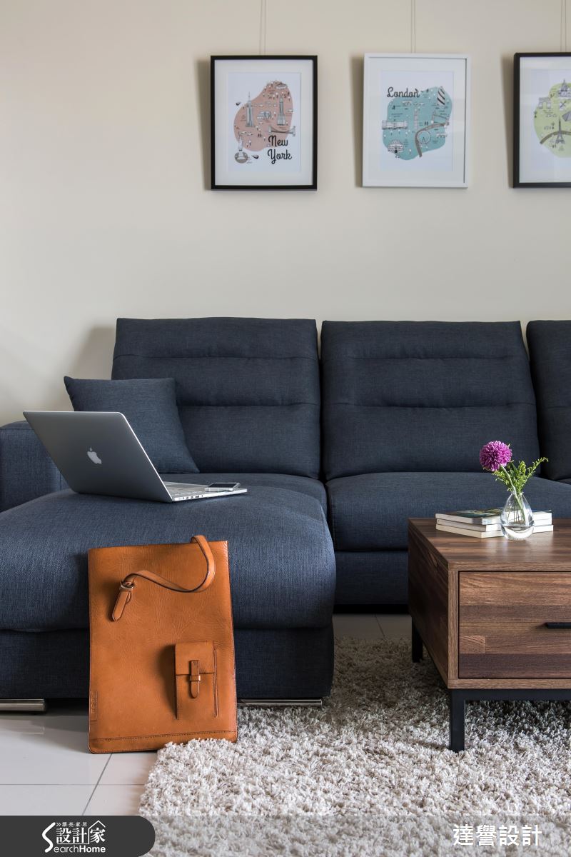 公領域以大面採光為設計,將窗外溫暖的陽光全部帶進來,讓深色調為基底的現代風格明亮了起來,同時映襯滿室細膩、動人的紋理細節。自然、粗獷質感的進口壁磚打造電視牆造型,輕盈、生動的紋理調和滿室舒心、無壓的空間氛圍;簡約質感的沙發與家具配搭下,展現俐落的現代感氣息,在壁面飾以多漾彩畫作,或是擺設風格物件的方式,讓黑白色系為基底的居家環境流露些許神采。