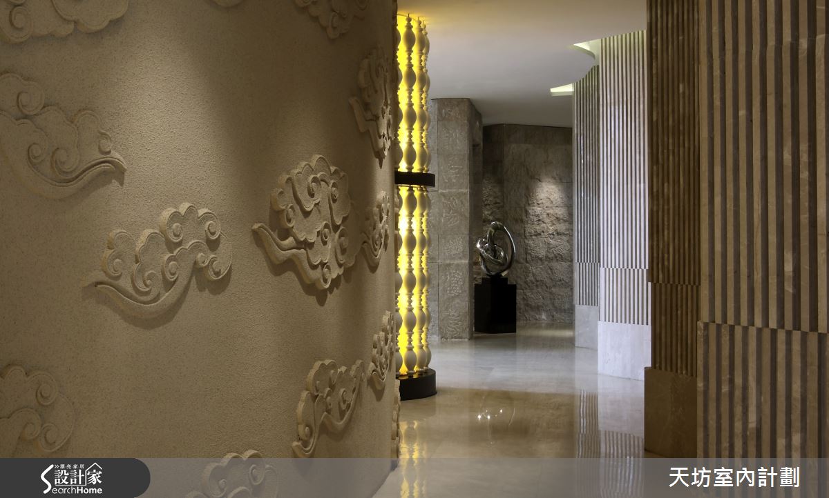 地下一層為頂級休閒娛樂區,含括了俱樂部、恆溫泳池、健身房、有氧教室、兒童遊樂室等休閒娛樂功能,都可看到東方語彙的轉譯鋪陳,以精緻雕刻的鏤空圖騰交融西方的時尚元素,將東西文化剪輯揉合,給予虛實線條的穿透交錯,訴說敞開與轉折間的明暗關係、曲面與直線的動靜對應,衍生出意念與藝術對話蒙太奇之美。
