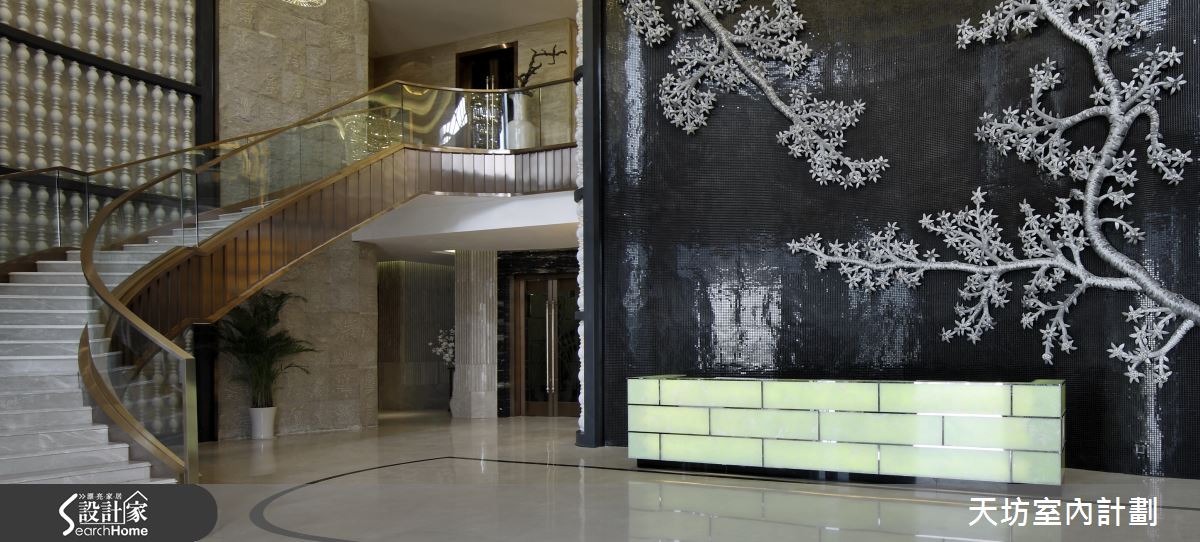 「贛州寶能太古城會所」完美落實蒙太奇的設計手法,將從古至今的東西方文化精髓重新解讀後揉合,詮釋出符合當代美學潮流的新空間內涵,從勾勒會所的流暢曲面的盤雲圖騰,到俐落框架鑲嵌的中式窗花語彙,都完全體現蒙太奇的空間型式與素材,整合古典、新古典、現代、東方與極簡等風格元素,型塑富有層次與故事的美學空間;踏入接待大廳,貫穿樓層的陶瓷剪藝術創作隨即大器迎面而來,左右銜接樓層的樓梯彷彿輕捧藝品的雙手,以流暢弧線之姿傾流而下,而精緻的水晶吊燈、陶瓷燒製的牆面裝飾藝術,皆帶來淵遠懷古的東方工藝精神;拾階而上,會所二樓的藝品展覽區陳列著豐富的古董收藏,牆面層架取自清代典藏精緻藝品的「多寶格」設計,讓物件之間產生關聯、相互搭配,凸顯展示藝品的珍貴價值;位於同層樓的包廂空間,則延續著藝品展覽區的調性,以中式家具陳設渲染出品茗的雅致氛圍。
