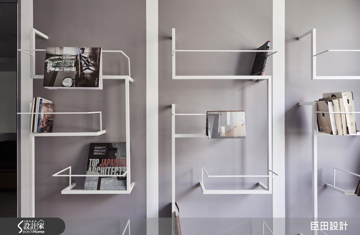 設計除了美感,也應兼顧生活便利性。書房後的書架不僅提供置物,更可將沒看完的書直接吊掛,既不浪費桌面空間,也減少書籤的使用,一舉數得!