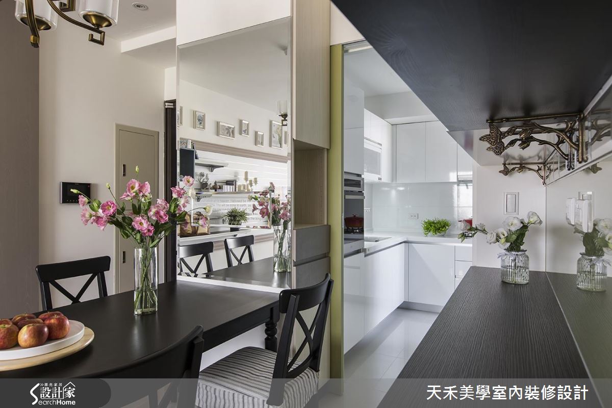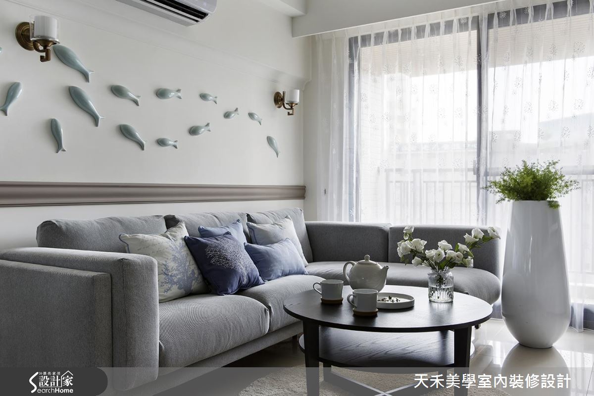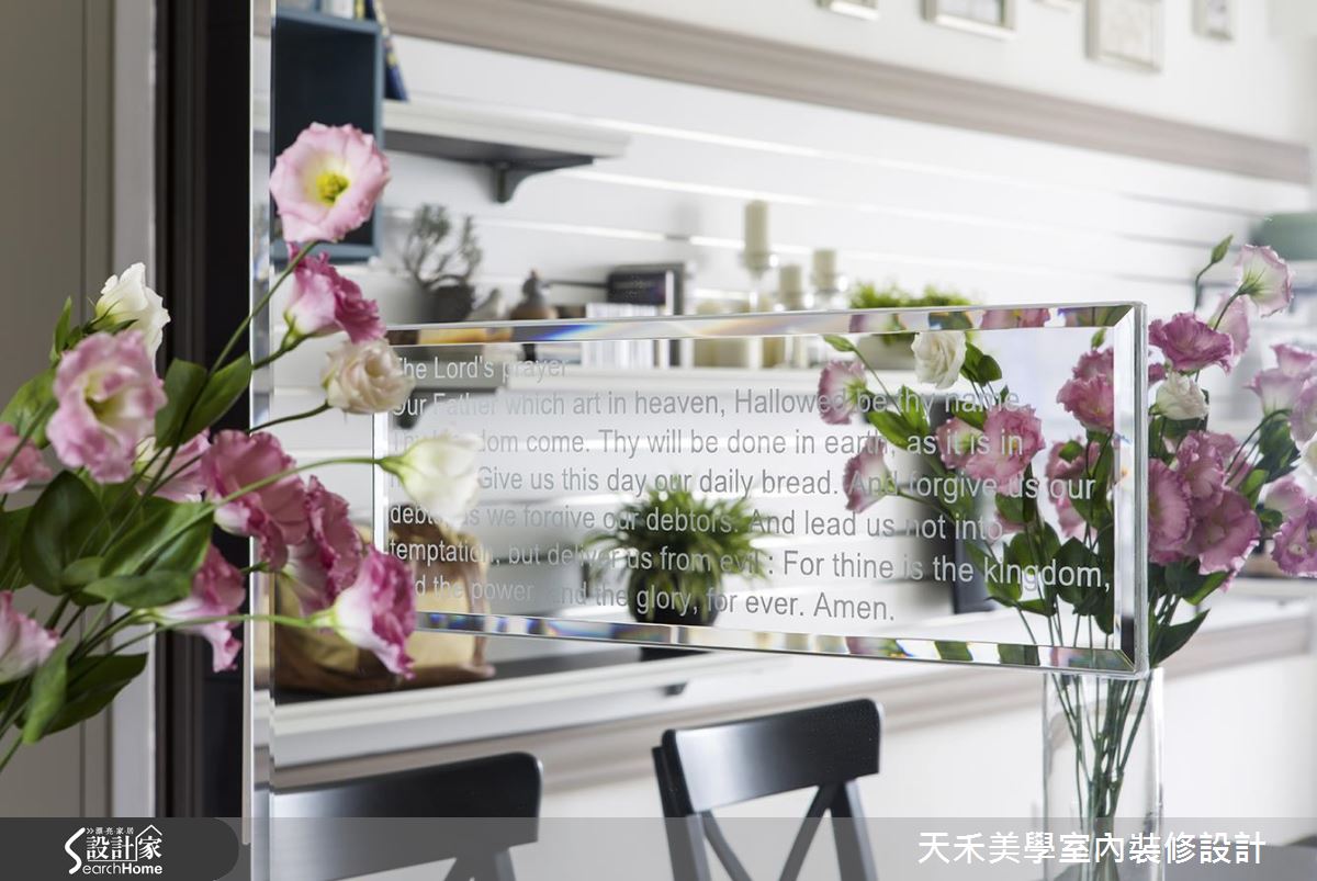 本案屋況良好且採光明亮,惟3房2廳在20坪空間顯得較為侷促,也無充足的收納機能。設計師精準地掌控預算並發揮現有格局的優點,為屋主注入喜愛的潔淨簡約風格,營造時尚輕豪宅的質感。以開放式設計為主軸,打開串連客餐廳的空間視野,並以條板設計為多功能的電視牆,可隨心滿足開放式收納,同時利用條板線條的延伸,塑造寬敞明亮的景深。進一步利用輕裝修與Deco概念,將信仰意象融入居家細節,例如沙發背牆的立體魚型壁飾,即象徵傳揚福音「得人如得魚」;餐廳明鏡浮現的主禱文、各空間主牆節錄的聖經金句,更突顯了生活與信仰的緊密連結。暖男屋主的父母時常北上拜訪,設計師也為此以大地色系打造專屬孝親房,另外,更為了愛好閱讀的屋主,規劃未來可與另一半談心的獨立書房,滿足一家人所有的居住需求。