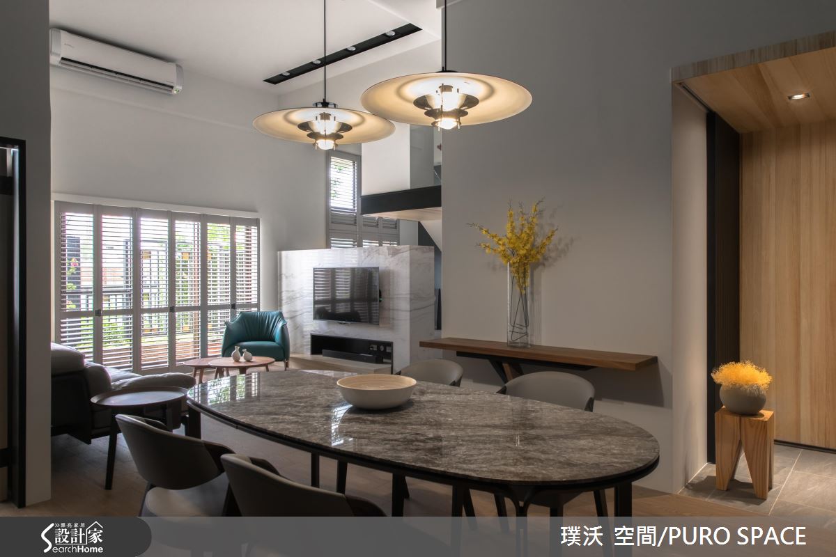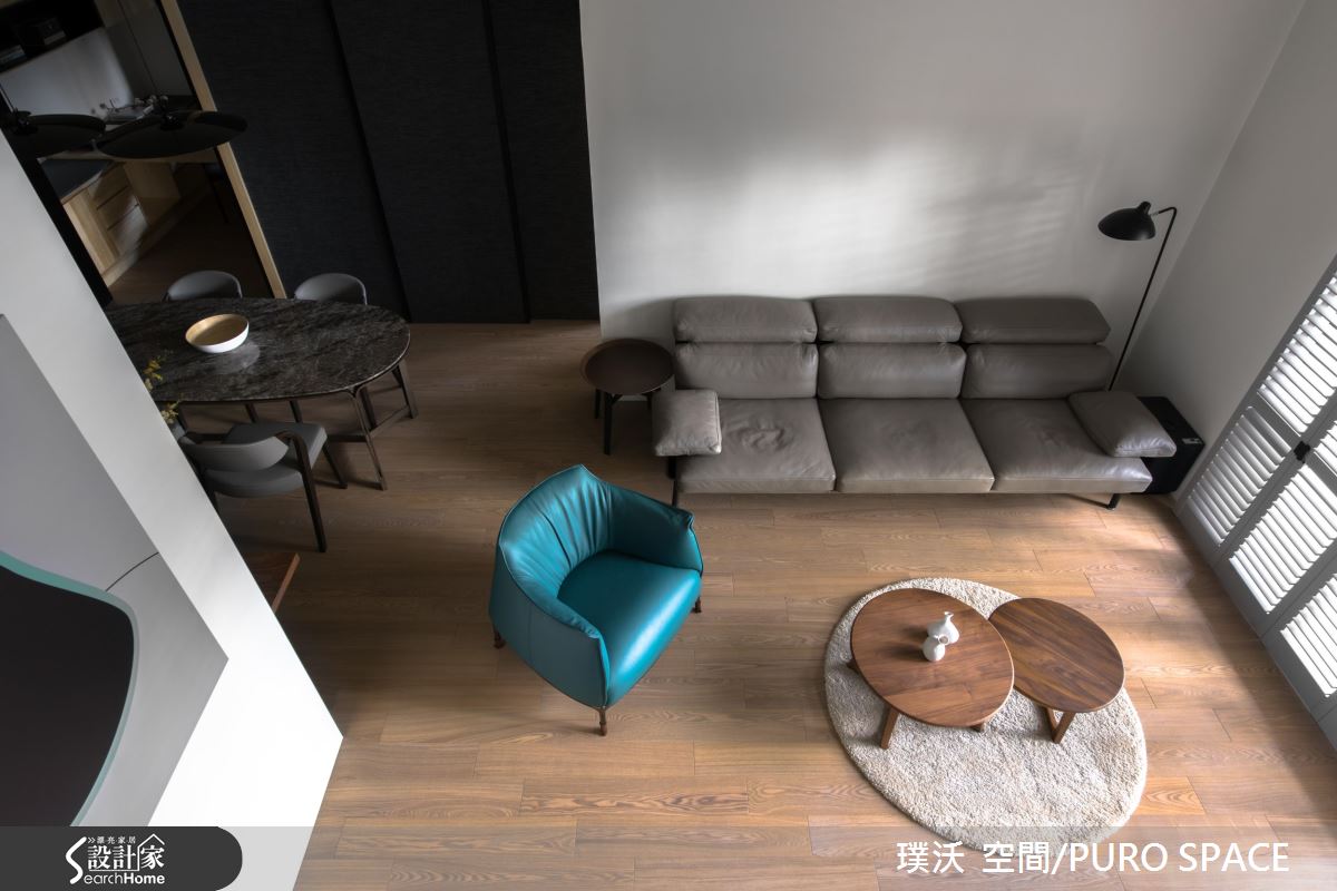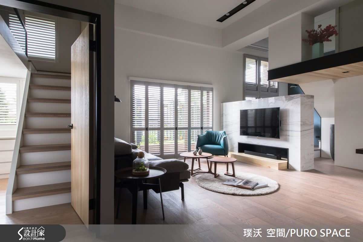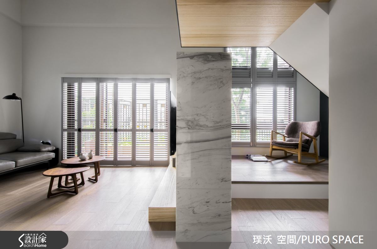 此案是屋主作為退休後,一處與家人同樂的休閒場域,因此在整體空間的規劃裡,藉由原本挑高的空間格局,利用簡約舒壓的木紋鋪陳室內,百葉窗引入大量的自然光源,創造出靜謐、明亮的日光宅。