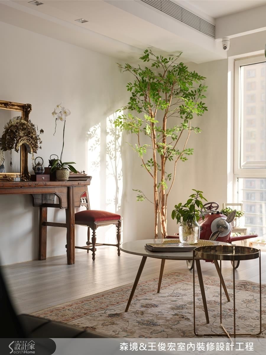 身為插畫家的女主人,喜好貼近大自然,期盼將綠意帶入日常生活;而對舊家的家具與藝品收藏,每一件都能細數來歷,希望能在新家好好展示。在森境設計團隊的擘劃下,除了在客廳窗邊挖出十公分的凹洞種下一棵希望之樹,家中也佈置不少植栽,以清淺亮白為空間基調,讓藝品的多彩與樣貌盡情展現丰姿,讓這間位在北京的高樓住宅,充滿了藝術感與生命力。