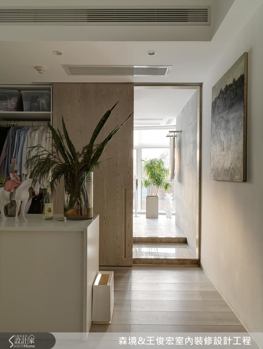 後段寢臥區以拉門與公領域區隔,由於小孩年紀還小,將原有3房重新規劃為進落式層層遞進的主臥、更衣室與兒童房,方便屋主就近照顧小孩;有客來訪時,關上拉門保有隱私,平時打開就成為毫無阻攔,寬闊的生活空間。