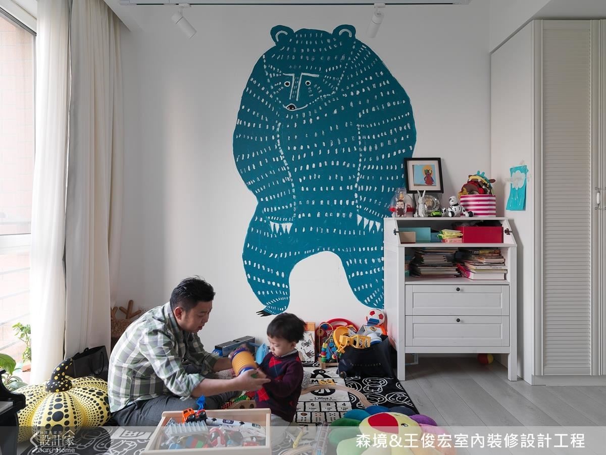 兒童房中的大熊,是屋主親自繪製,洋溢童趣與活潑調性,更是充滿對孩子滿滿的愛意。