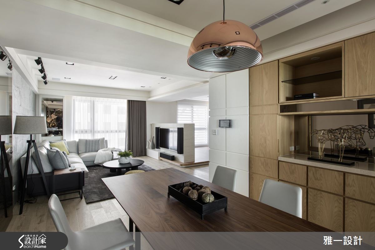 設計團隊為 60 坪空間製造許多對比,包含建材、色調與風格,當穩重的建材遇上輕盈的色調,營造清新不失豐盈的空間張力。