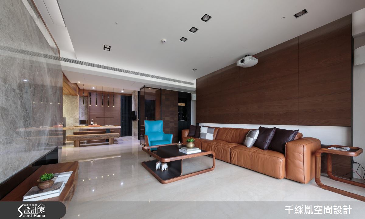 設計師在客廳選配一張藍色單椅,藉由摩登感的造型、鮮明的色彩凝聚焦點,於穩重基調中帶出強烈反差,衍生畫龍點睛的效果!