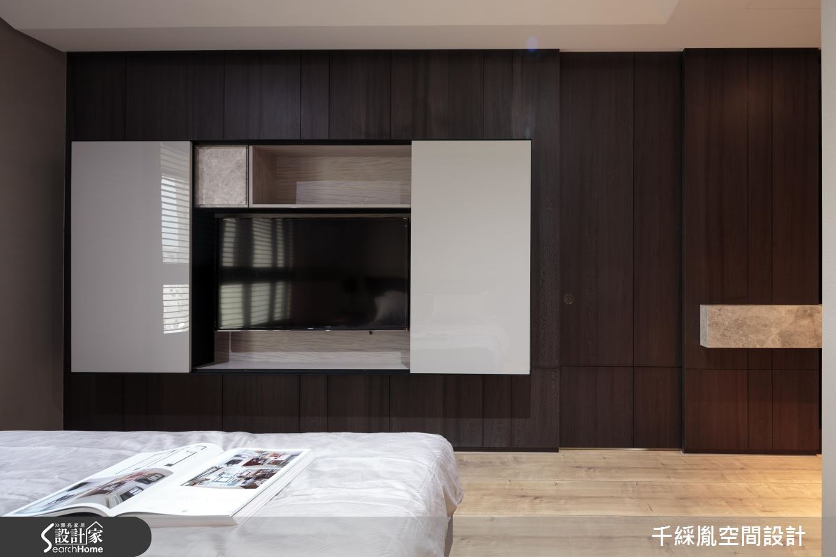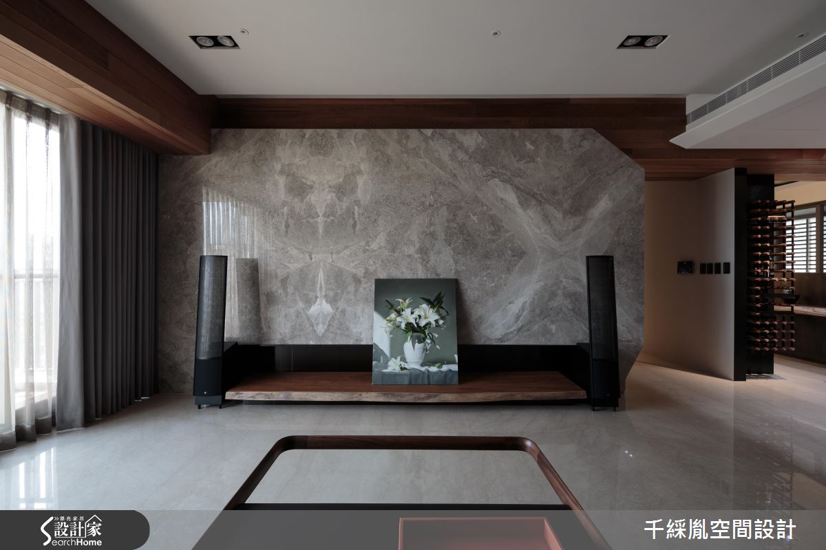 居家賦予流暢的格局分配,讓場域與場域之間相互連通,塑造寬敞視野,並捨棄繁複的色調建材,改以質樸的木與石貫穿主題,不僅修飾橫樑存在,也構成俐落的壁面造型,而大理石打造的電視主牆,刻意地融入斜角飾邊,與天花大樑無違和銜接,在別出心裁的手法之下、將空間缺陷化為美感造型;沿著木作造型樑的脈絡,可來到餐廚地帶,讓紮實的實木餐桌與中島一體成型,一旁則精心規劃展示酒架,替轉角添入個性化亮點;寢臥鋪陳木地板,搭配色系一致的木家具及木窗,闡述素淨的禪風主軸,床頭牆反差地以亮面材質打底,衍生古樸與現代並存的對比之美,而電視則隱於彈性櫃面之內,賦予牆面多重機能,重新定義立面表情!