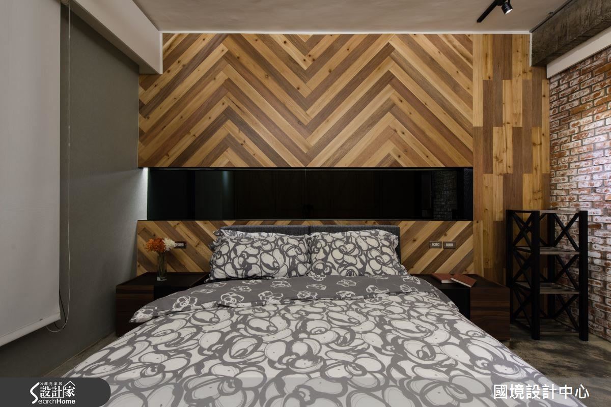臥房延續公領域的獨到風格,進一步在木質牆面混合人字拼工法,製造活潑的牆面端景,佐以紅磚牆與水泥粉光,創造個性滿點的私人場域。