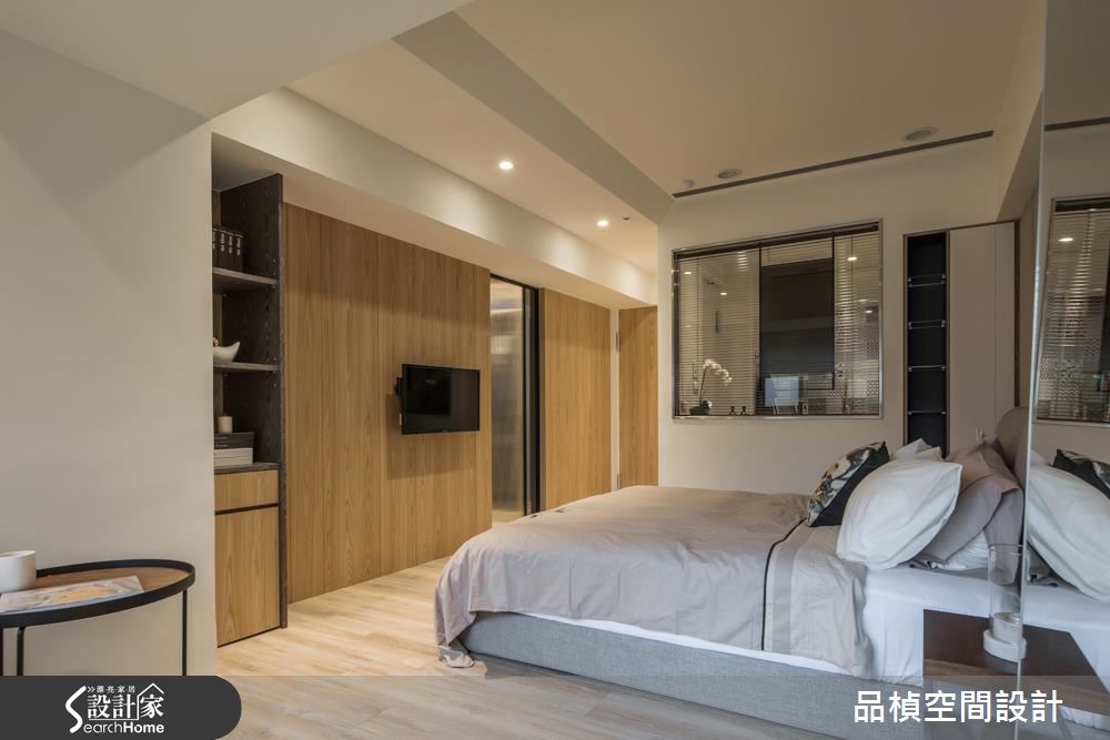 設計師重劃主臥動線,不僅為屋主在窗邊保留健身空間,更增設收納機能充裕的更衣間,讓眾多物件不再成為困擾。