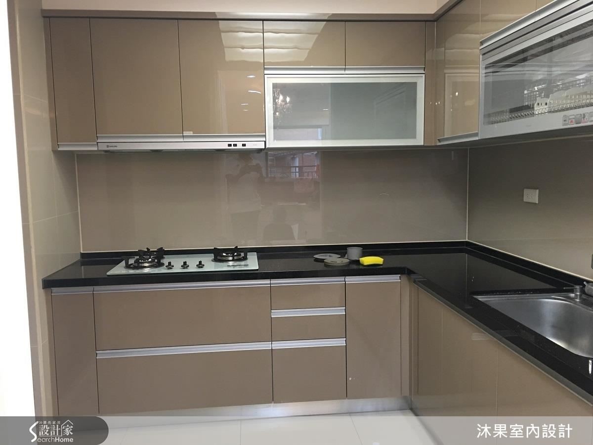 原先廚房設備不足,從水槽到瓦斯爐的烹飪動線過長,因此于設計師建議縮短瓦斯爐台面並向右挪移,多出來的空間作為電器櫃用途,並增設乾糧側拉櫃。