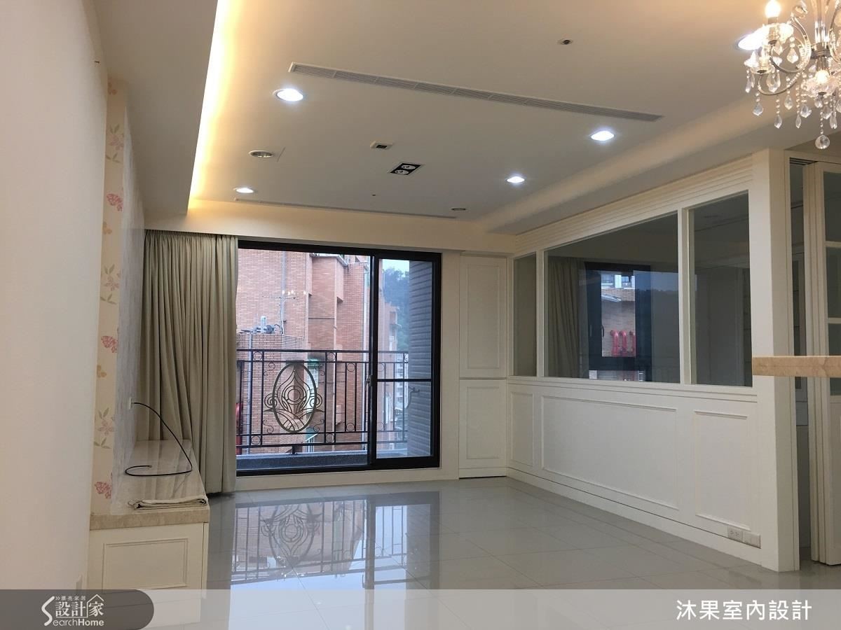 設計師挪用天花裝修預算,改為投放在廚具更換上,抹除繁複的線板或降板,僅更動燈飾。經過仔細檢視地坪品質,採用木地板直鋪磁磚的工法,為屋主省去大筆敲除地磚的預算。