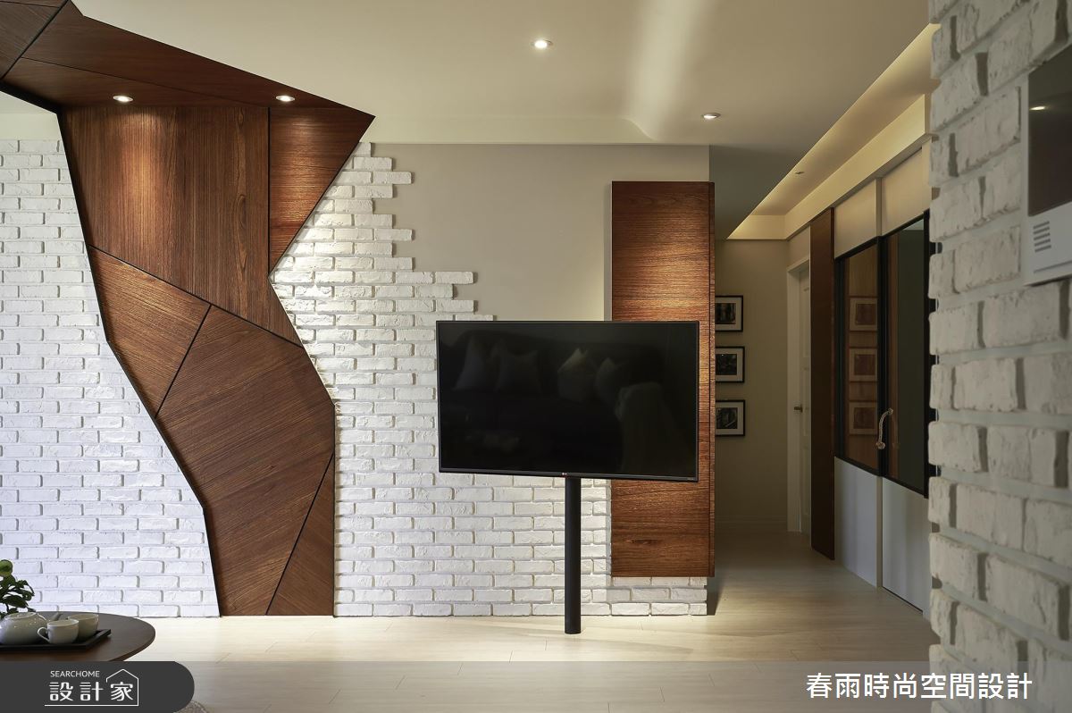 36坪休閒風居宅,設計師採以樹幹做為象徵,沿用木皮、文化石等天然感建材,透過獨樹一幟的幾何、線條語彙擘劃空間,展現出新穎兼具溫度的住宅視野,快跟著小編一起來看看吧!公領域以白色、木色作為基底,採用木地坪鋪陳全室,搭配落地窗的採光映照,烘托廳區的寫意氛圍,主牆則賦予獨特表情,融入文化石為背景,巧妙給予