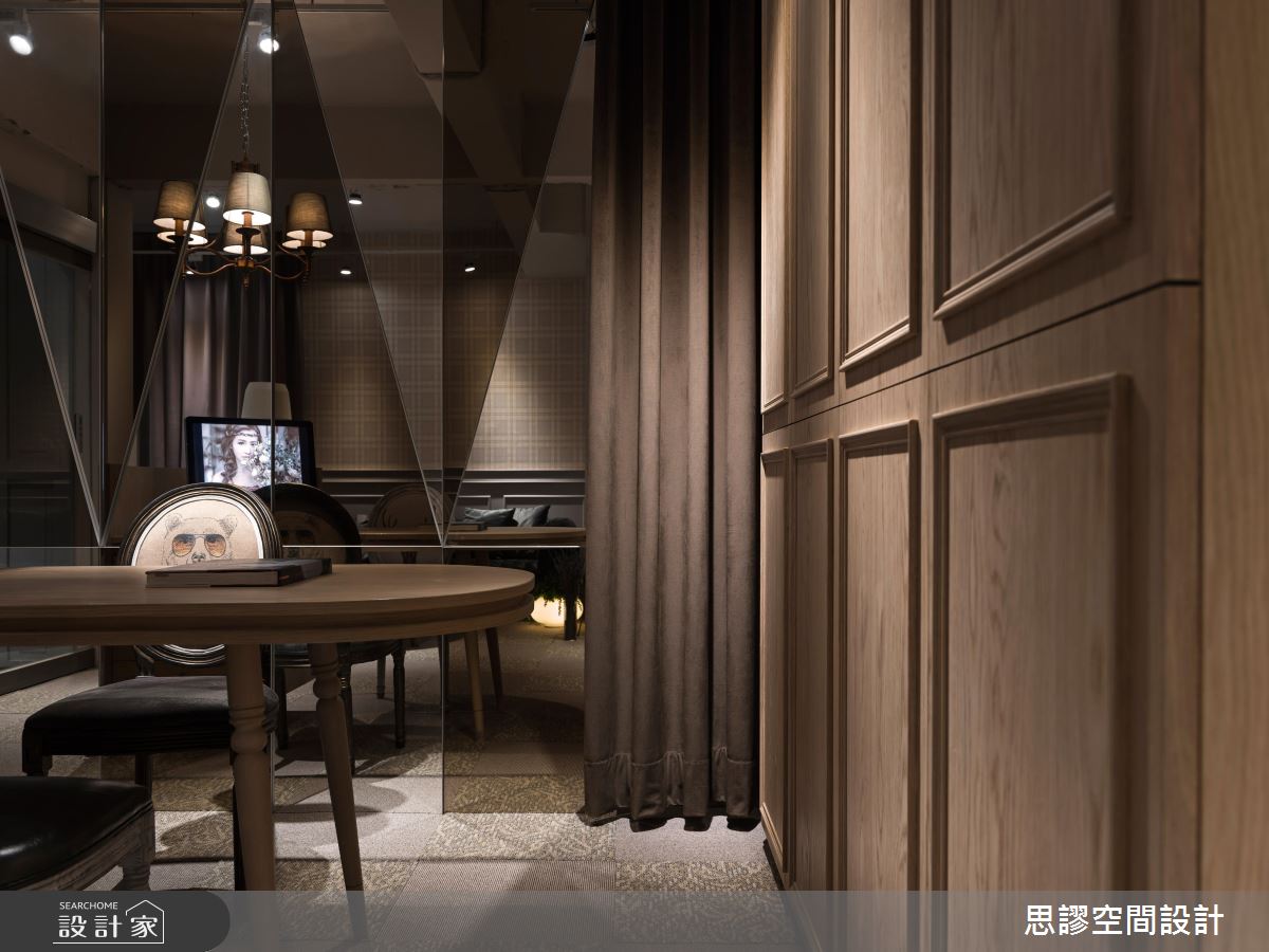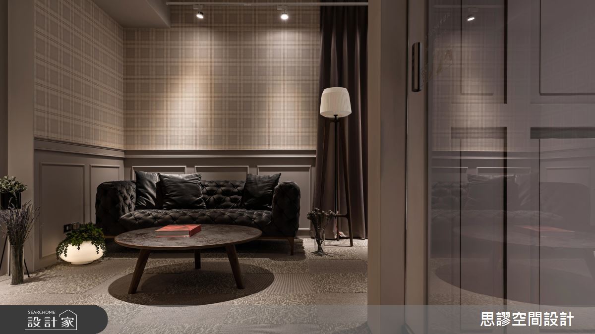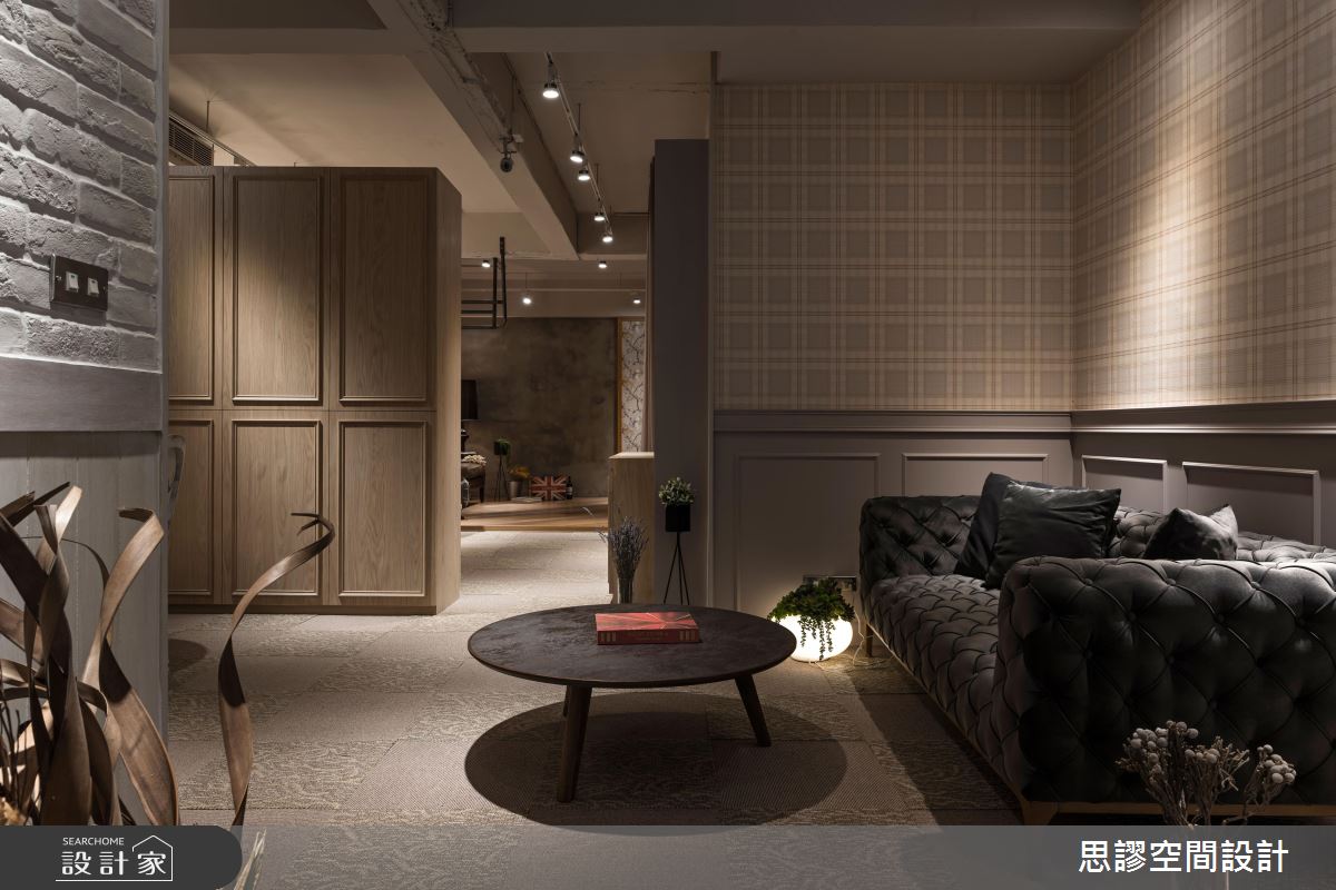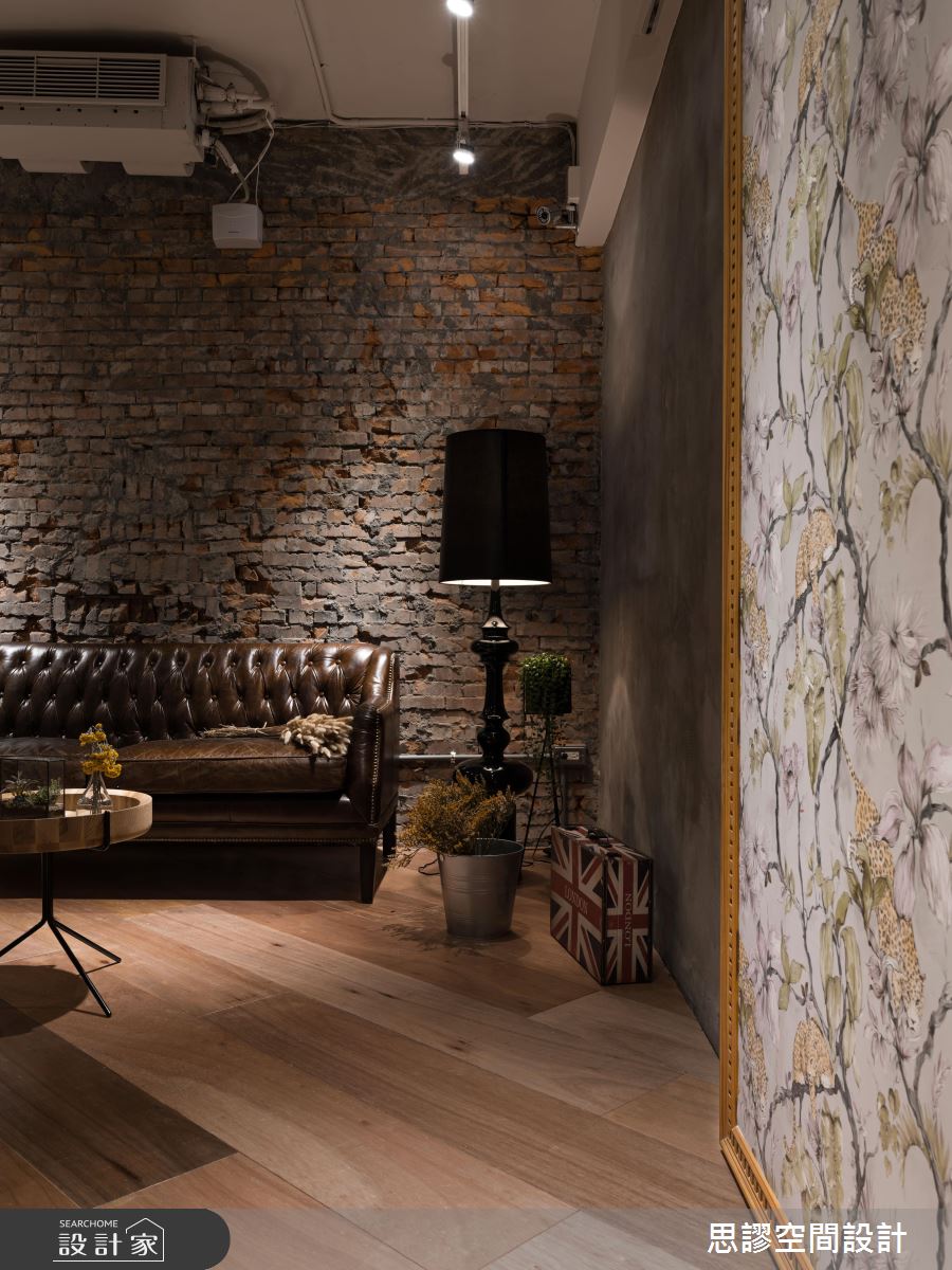 在粗獷的工業筆觸裡,設計師添入鏡面、皮沙發、壁紙等時尚元素,並給予低柔的黃光點綴,使整體空間散發令人驚豔的風采!