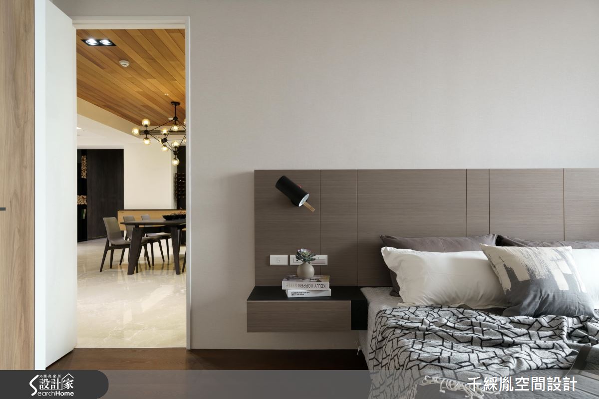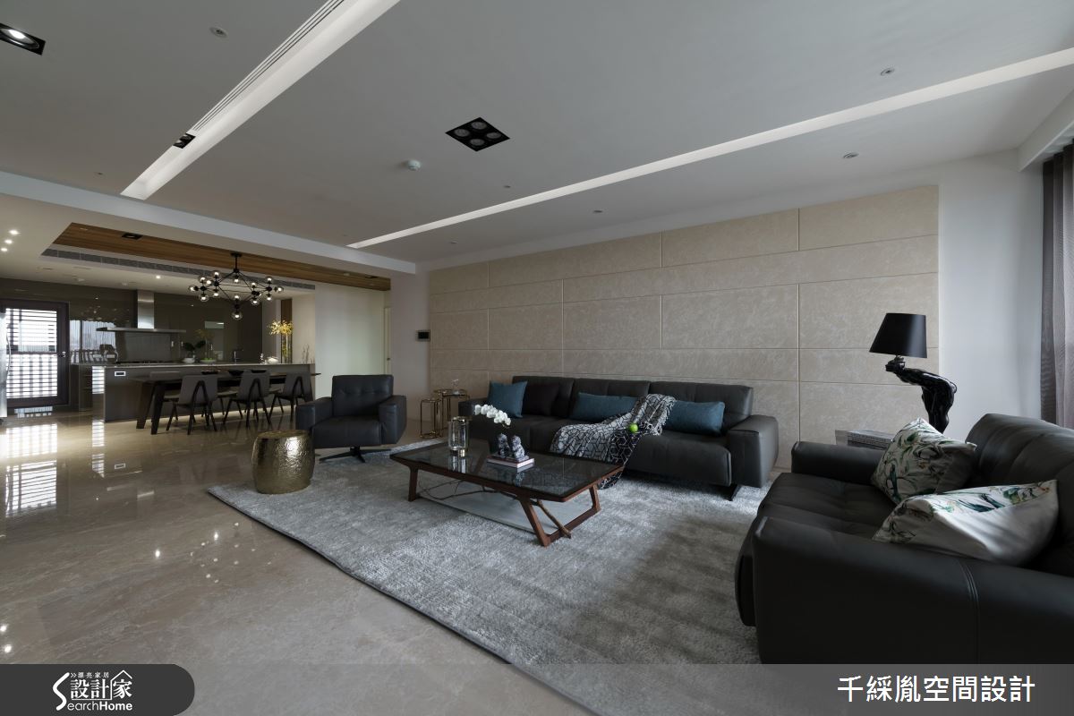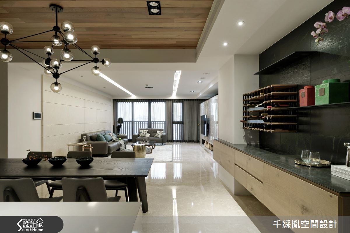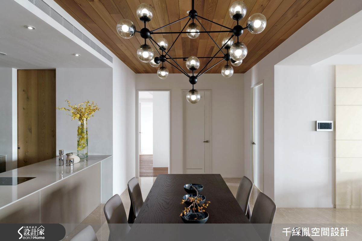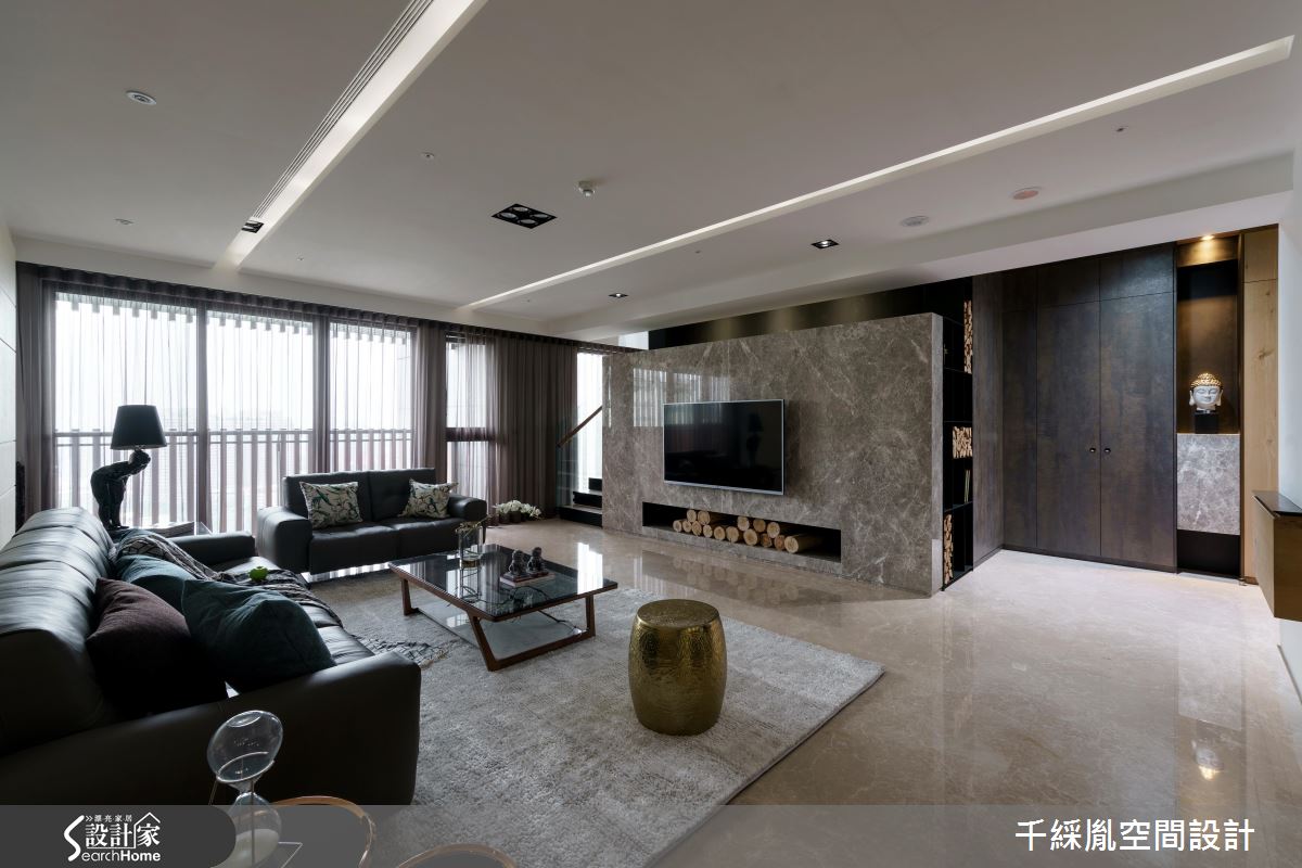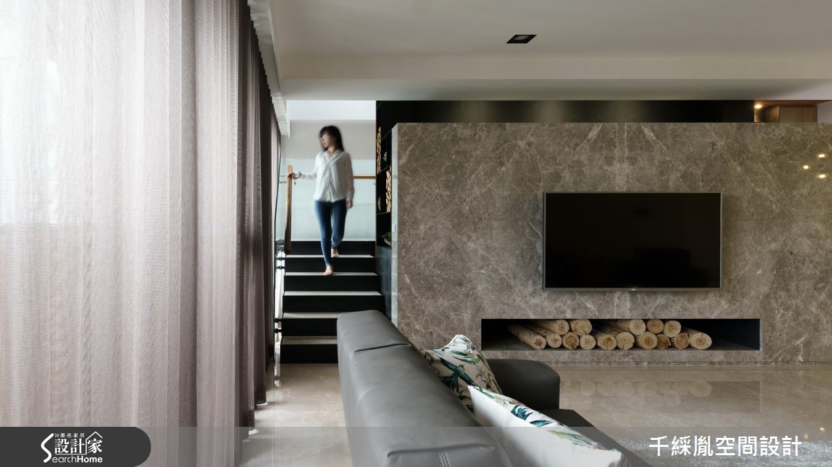 首先因應屋主需求,以開放設計串連客廳與餐廚場域,打開整體視野,並改變樓梯坡度與方向,讓動線更加貼合行動不便的主要居住者。接著,為了有效減省預算,設計師保留建商原有廚具設備,並將主預算放置公領域,去除繁複的裝潢工法與建材,以俐落線條框設整個居家空間。針對材質應用,玄關處以斑駁色調的薄磚營造仿舊美感,並將大理石應用在檯面與電視牆,達成相呼應的大器氛圍。主臥順應屋主喜好,以黃油烤玻櫃面、鐵件展示架與大地配色跳脫傳統木皮櫃門思維,引進時尚氣息。