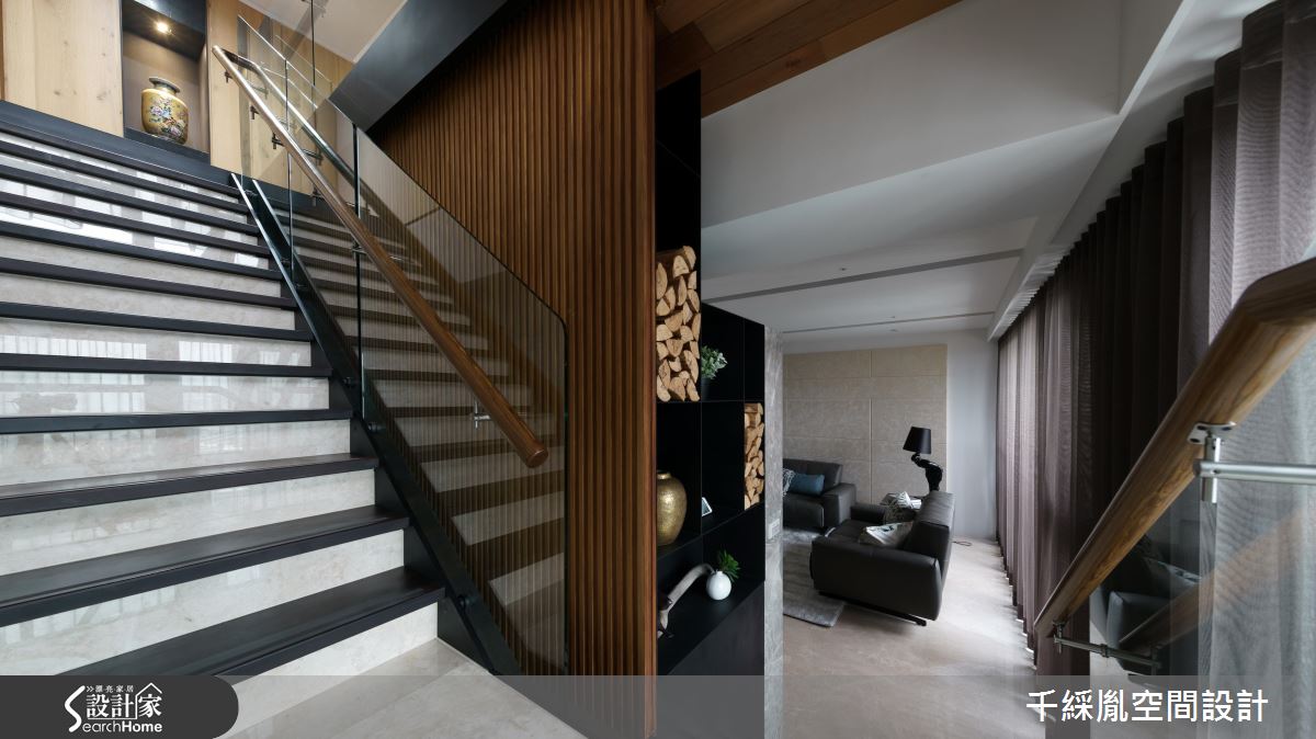 80 坪樓中樓為陸商屋主來台辦公時的居所,同時身兼招待所與員工宿舍,設計團隊以簡約卻富有質感的自然建材刻劃空間線條,營造大器時尚質調。