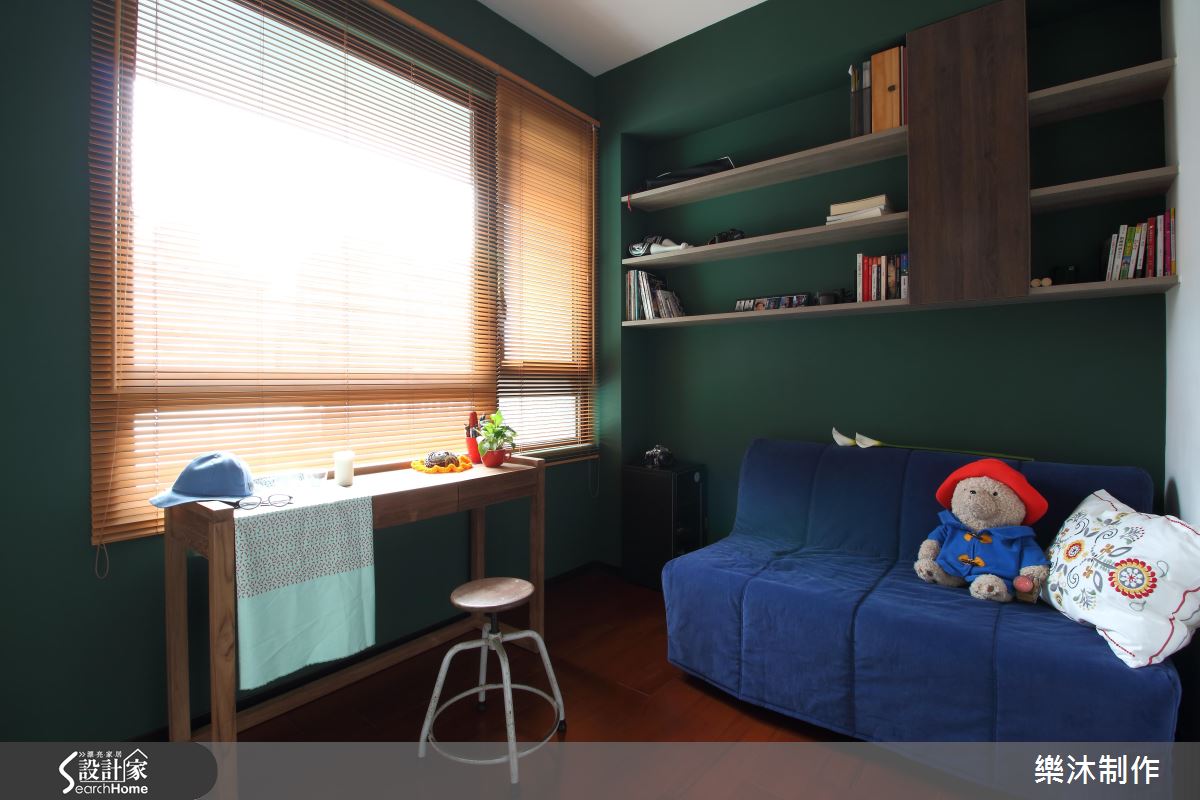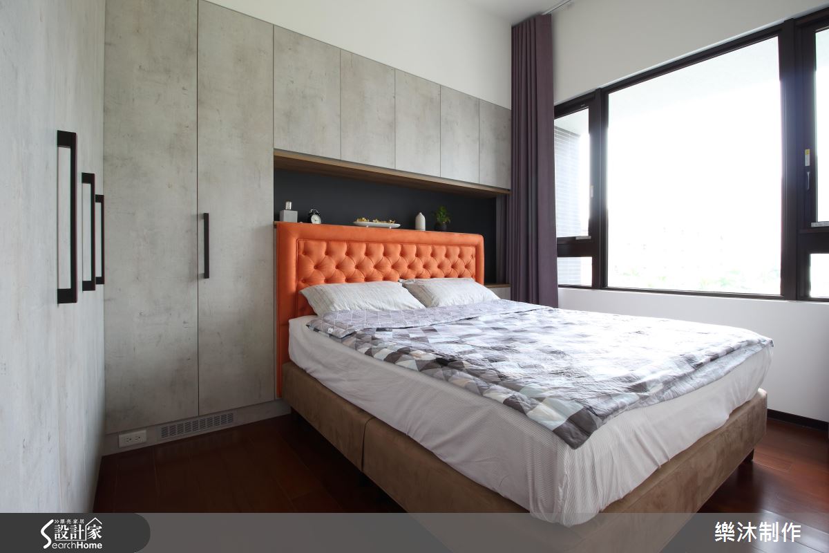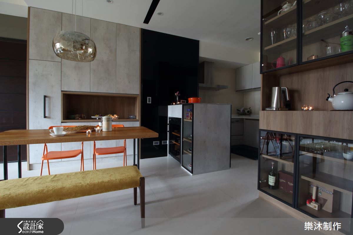 白淨無壓的光線從百葉縫隙滲入空間,照亮樸實灰色調所營造的不凡室內,藉由橘、綠跳色與玻璃質感的點綴,劃破寂靜氛圍。