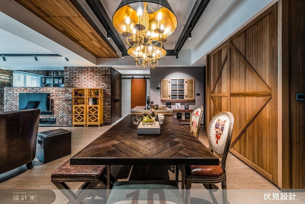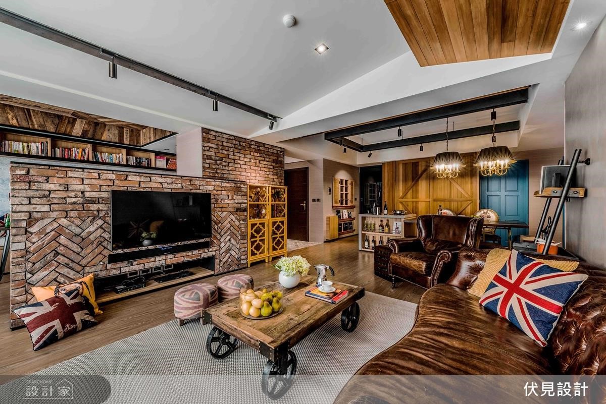 鍾總監先微調書房格局,與客廳以書櫃、美國復古磚電視牆的雙面櫃為界,藉由半開放式設計串聯起客餐廳,保有公領域的寬敞,不管是家人團聚或招待朋友,都有足夠的活動空間。由於天花板大樑造成上下層落差較大,為了保留屋高並隱藏管線,設計師以實木架構漸進式斜面,化解樑體的視覺困擾,餐廳上方則以黑色鐵件為框,妥善隱藏燈線,材質的完美搭配,讓家充滿復古風的 Loft 情調。
