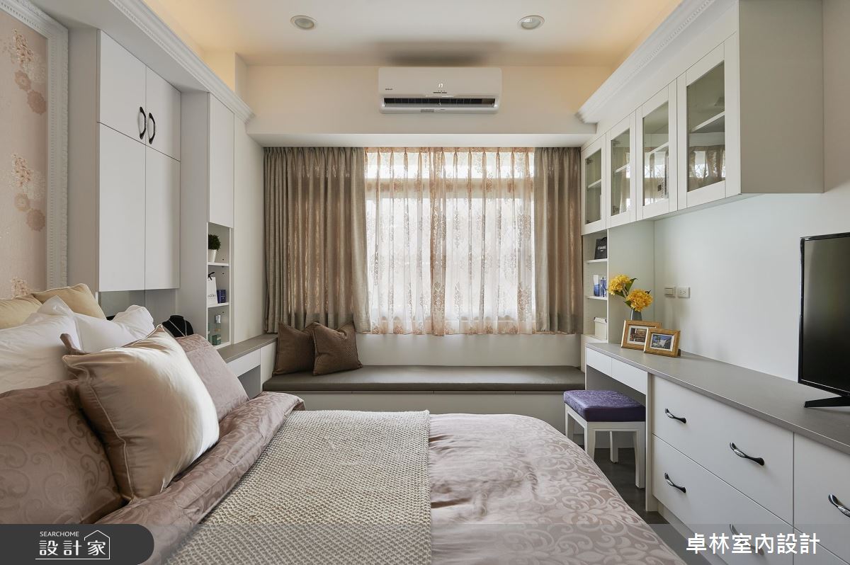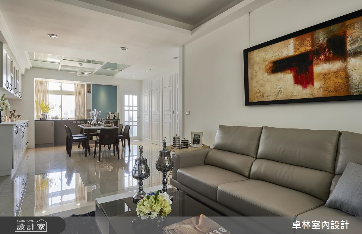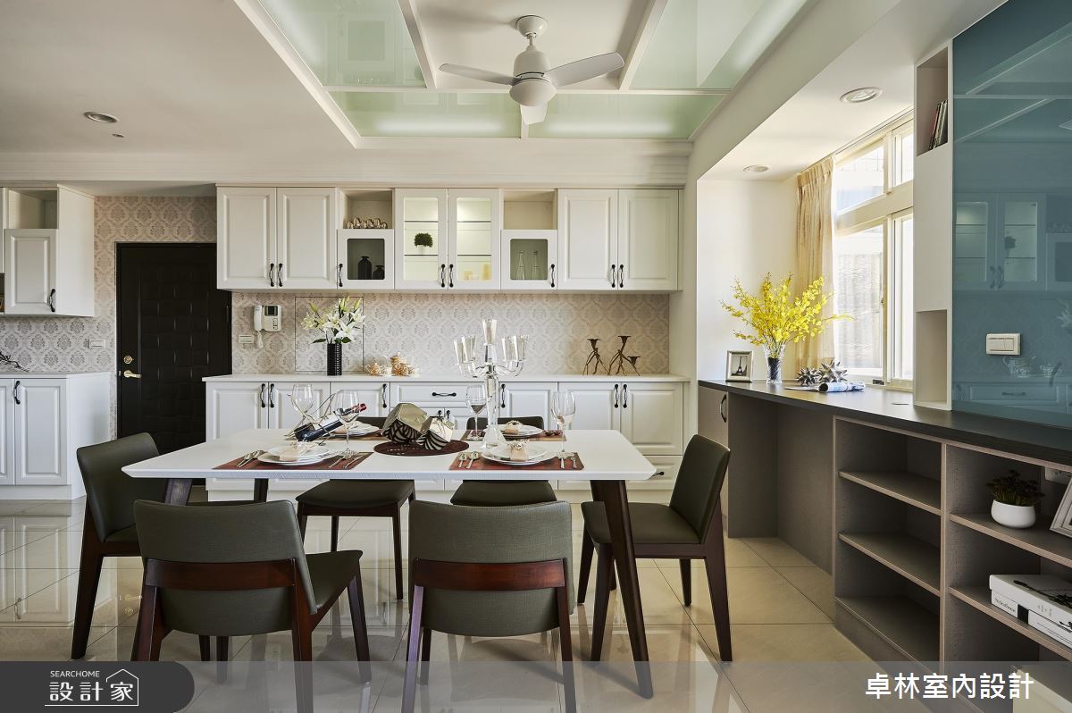 設計師首先拆解封閉隔間牆,佐以通透流暢的動線佈局,將客廳及餐廚領域開放串接,打通出開闊空間感,創造延伸且高互動性的生活情境,同時給予柔雅的簡白背景,融入細緻的線板妝點,勾勒出美麗的櫃面與門片表情,而充裕的收納機能也是特點之一,從電視主牆、餐桌旁側到廚房等處,均可見多元的置物空間,貼近使用者所需;寢臥場域則兼顧舒適性與風格,藉由壁紙鋪述牆面、闡述優雅格調,並規劃臥榻且整合櫃體,多方滿足梳妝、休憩、書櫃等功能,創造一應俱全的寢居樣貌!