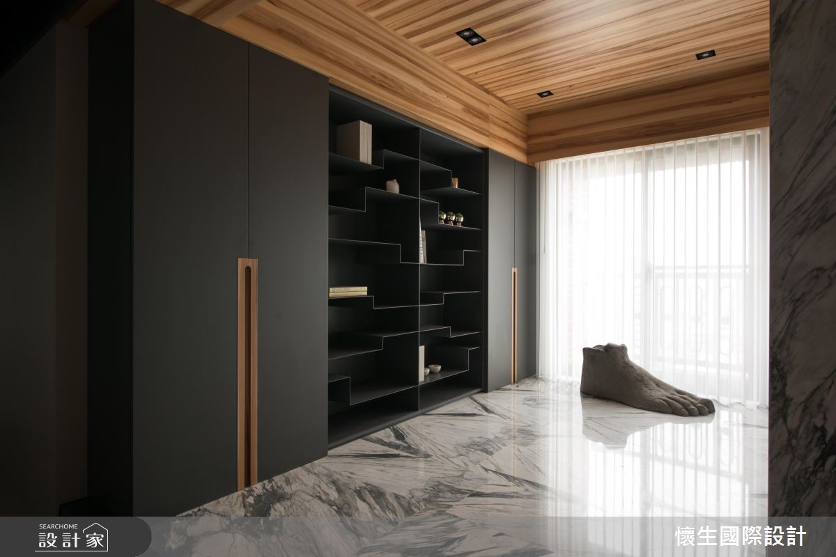 因為屋主有大量的展示和收納需求,除了獨特的櫃格造型,設計師更在櫃體上加入 LED 線型燈,使展示空間就像是時尚精品的展示櫥窗。