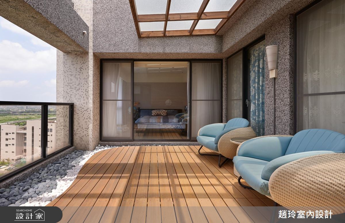 臥房外的露台,特意鋪述南方松木地板,且採用具島嶼感的訂製桌椅,搭配著一整片遼闊景致,營造美好的紓壓意境!