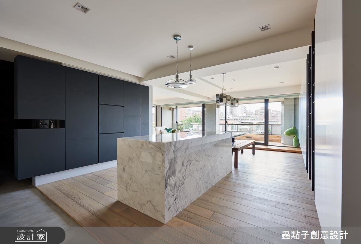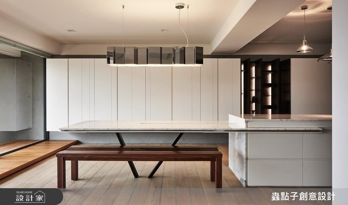 客製化機能量體,現代工藝傑作生活的藝術性完全無需刻意,最好是在最平常的作息中即可感知的美,那才叫深植人心。凡是來過這座好宅的親朋好友們,無不對這座用途廣泛的機能中島銜接餐桌的設計印象深刻,設計師選用光潤又極具質感的銀狐大理石,打造相互嵌合的高低檯面,餐桌中央預留線槽;加上剖面如同餅乾夾心的雙層造型,實用性當然無須多說,而且從各個角度欣賞都讓人愛不釋手,這才是真正與生活水乳交融的藝術性!