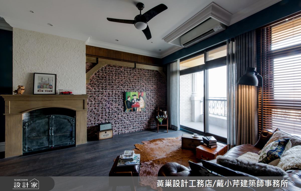 設計師重劃格局,將公領域設定為開放通透,並提供每個家庭成員充裕的臥房空間,歡聚、隱私皆宜。設計師在色彩搭配方面,以沉穩飽和的黃色與藍色搭配仿舊處理的櫃體與木作,散發自然氣息。針對風格營造,主要採用帶有立體觸感的建材,道地的廊式玄關復古六角磚,與深色超耐磨地坪做出區分,客廳主牆與餐廳壁櫃則分別採用粗獷紅磚面與灰階文化石,搭配刷上特殊漆的壁爐造型端景,營造道地、質樸的美式風格。挑選家具家飾,設計師以皮製沙發、毛皮地氈與帶有經典卡布里腳的圓桌以及鐵件吊燈,增添諸多精緻細節。在走廊注入西部時代美式小酒館的元素,包含格狀落地窗與壁燈,讓時空彷彿倒流,左右兩側分別獨立為書房與廚房空間,同樣蘊藏了百葉、推窗、臥榻、花磚等美式元素。