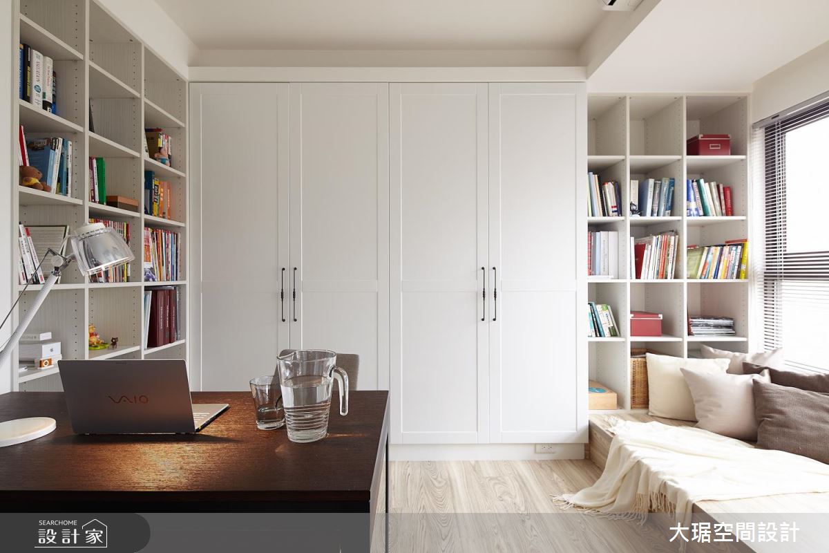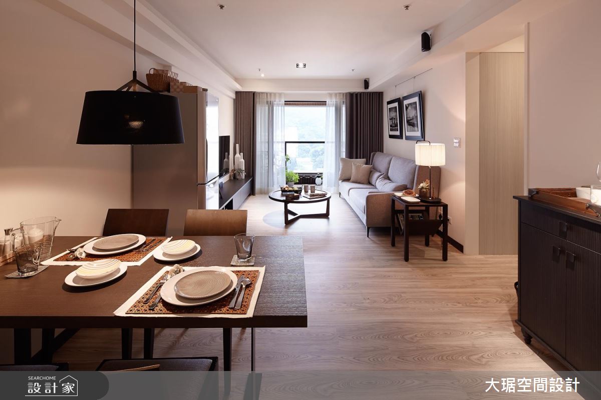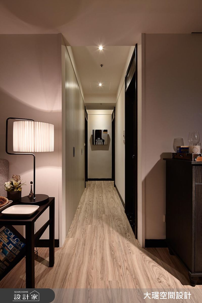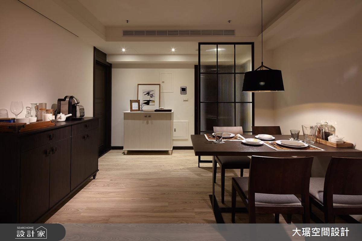 入口處以玻璃搭配鐵件的屏風設計,簡約而俐落地劃分出玄關緩衝,加置一張矮櫃,讓屋主的收藏展示,成為進門後的第一道風景。客、餐廳運用開放式設計,放大整體的空間感受,並以溫潤的木質色調和線條簡約的家具,帶來優雅輕鬆的生活氛圍。主臥室同時具屋主的起居和工作室用途,因此賦予豐富的收納設計,而除了睡眠休憩區和閱讀辦公機能外,臥室裡更因應屋主期待的泡澡區,打造出開放透亮的衛浴空間,而窗畔也設置了休憩的臥榻角落,體現休閒放鬆的生活樣貌。