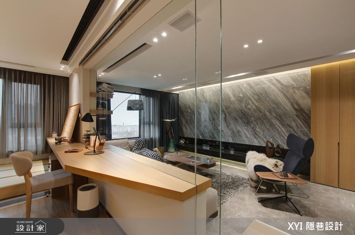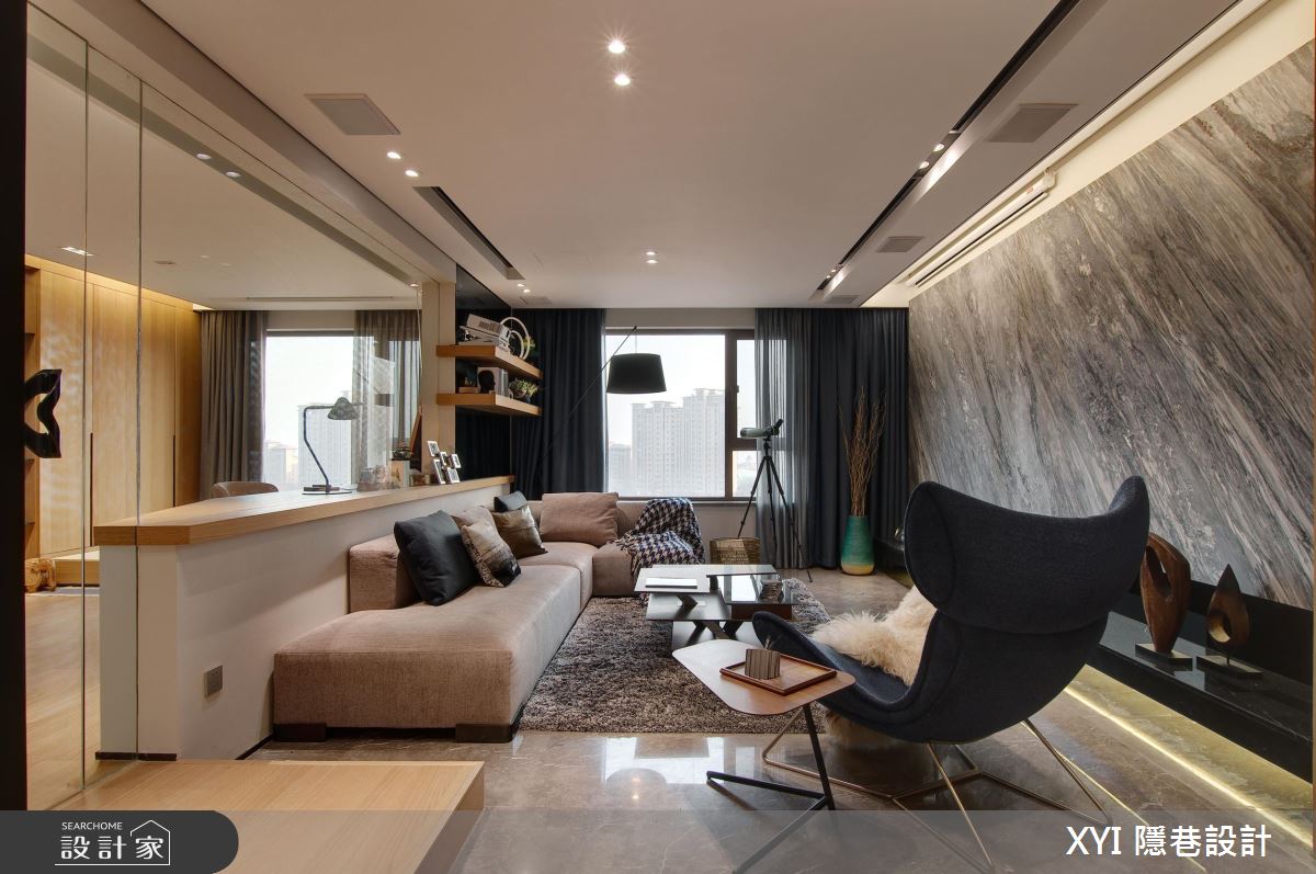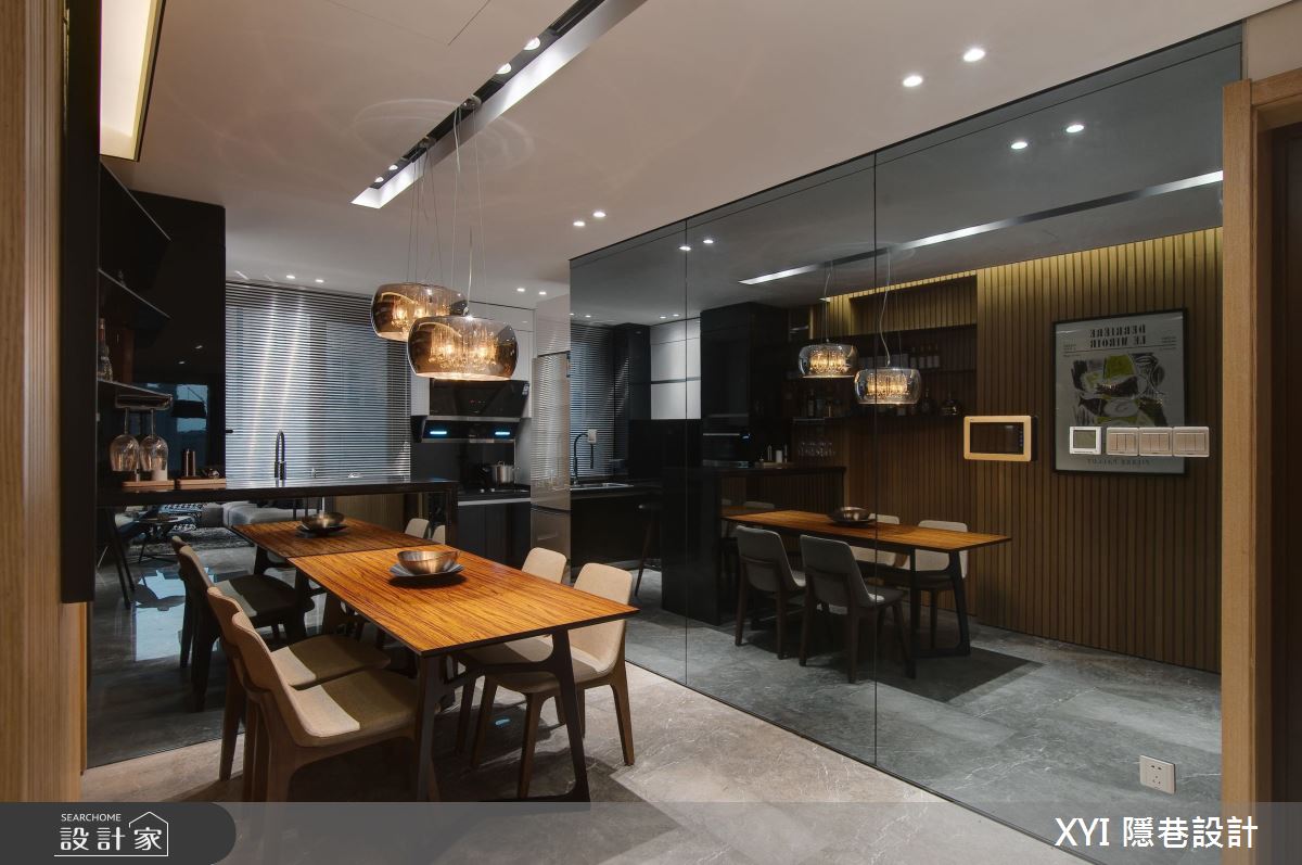 設計師使用石材、原木、纖維織料等建材型構放鬆氛圍,且藉由窗戶採光的導入,配合著隔間通透處理,促進整體的明亮與敞闊,同時不設電視屏幕,保有石材主牆的大面積自然紋理,改於牆面上方安置隱藏式升降投影布幕,打造更為優質的聲光影院效果,並運用清玻隔牆延伸視線,讓書房也能同步接受到廳區的美好視野;餐廳,除了給予開放式的吧檯規劃,也別出心裁地選用黑色烤玻,瞬間突破空間感,起到放大場域尺度的作用,而天花上方則點綴精緻的造型吊燈,凝聚高雅的餐敘氣氛;主臥內,承襲了整體的舒適溫度,不僅引用溫潤的木質素材,亦將設計細節體現於溝縫收邊,帶入細膩的生活好品味!