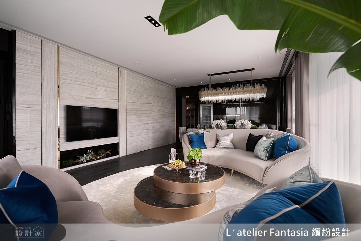 「試圖將視線留給珍惜的彼此」是一進到空間中的第一個想法,進門圓弧狀形的雙沙發,以桌几為圓心,自然的讓居住者在沙發區時,能夠將視線停留在共享時光的家人或是朋友的身上,而非面向壁面的電視。