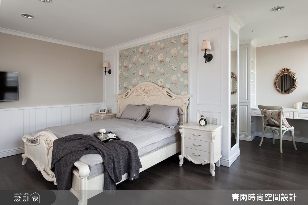 主臥與女孩房皆採用溫柔色調與複疊壁紙,在充裕日光的襯托下,佐以對襯壁燈設計,顯得優雅溫馨兼具。