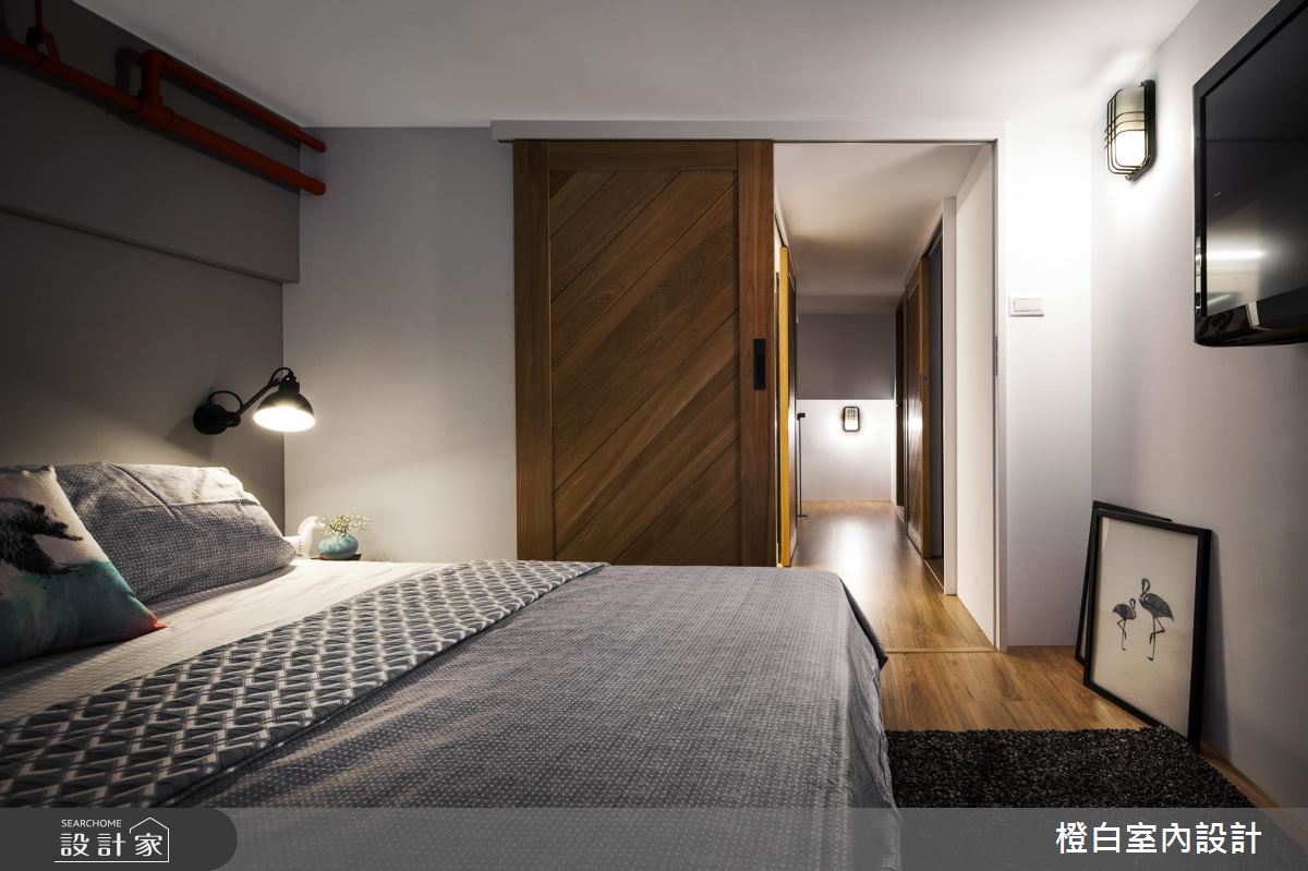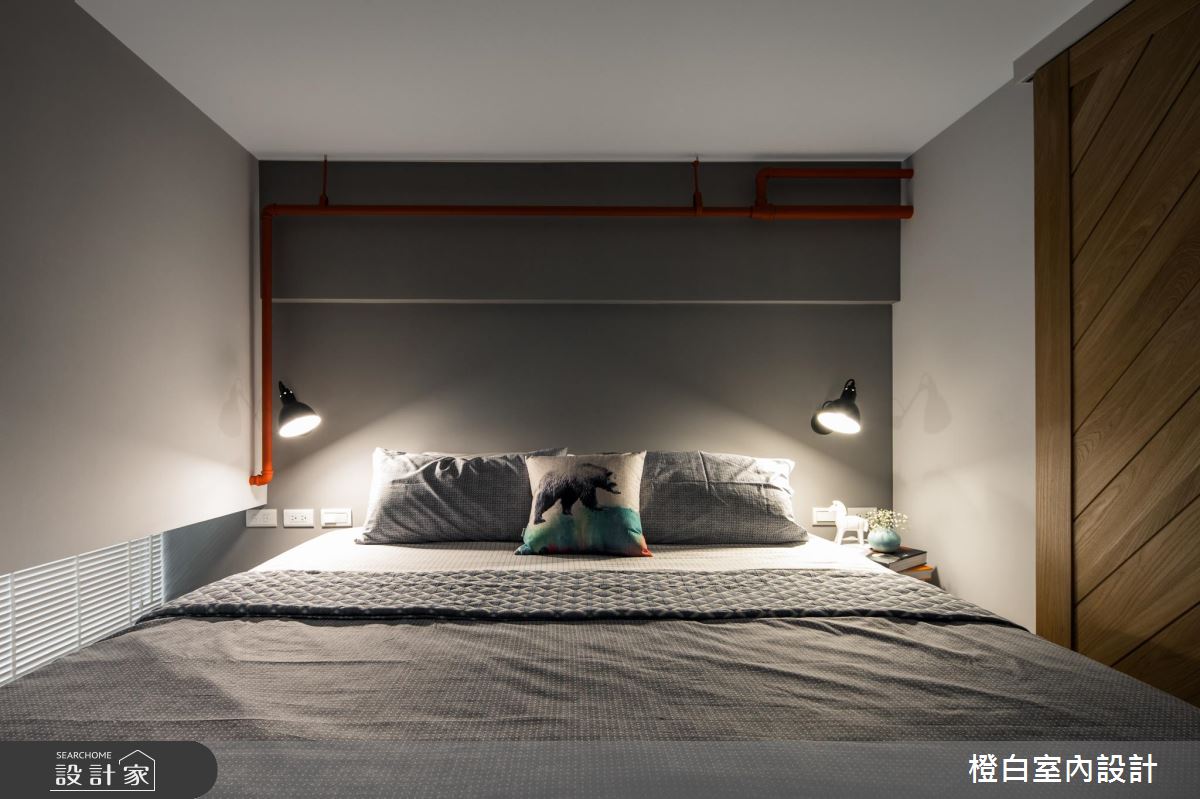 臥房床頭加入大面積灰底,搭配紅色管線延伸,形成鮮明趣味的聚焦效果,瞬間讓房間化身設計旅店,充滿率性與個性!