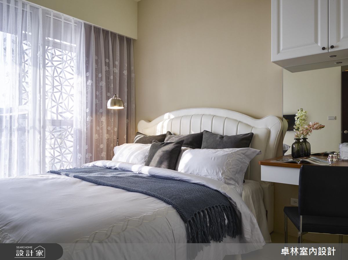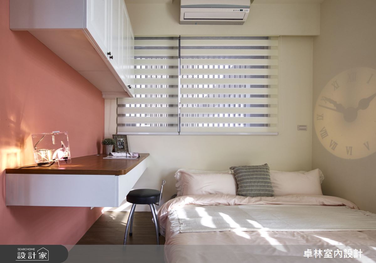 公共領域以開放式設計納入客廳、餐廚等機能,書房則以「玻璃盒」為概念,帶來更加清透、明亮、放大的視角感受,也增加了家人間互動的可能。設計師保留屋主原有的家具,重新在空間中排列後,巧妙地融入美式風格的邏輯思維中,更貼心地為屋主節省了添購新家具的預算。餐廳區運用吧檯式餐桌,搭配格柵天花和造型展示櫃,賦予紐約時尚的生活情調。而來到書房處,木作結合開放式的層板設計,挹注了充裕的收納機能,透過清透的玻璃介質,也能成為客廳處的漂亮風景。主臥與女兒房皆延續了美式語彙,並分別以霧鄉色、甜美粉紅為主調,為不同的居住者帶來專屬的私領域氣質。