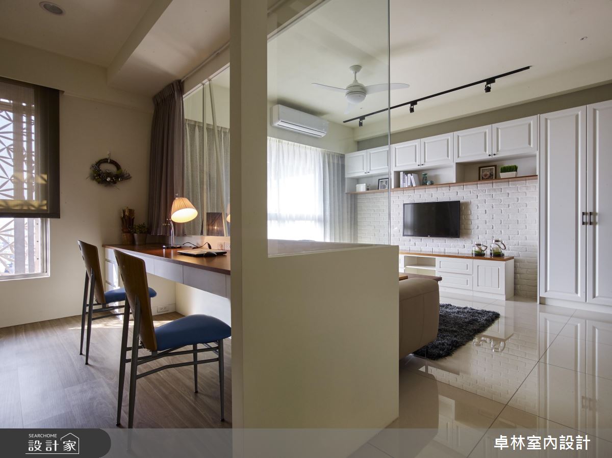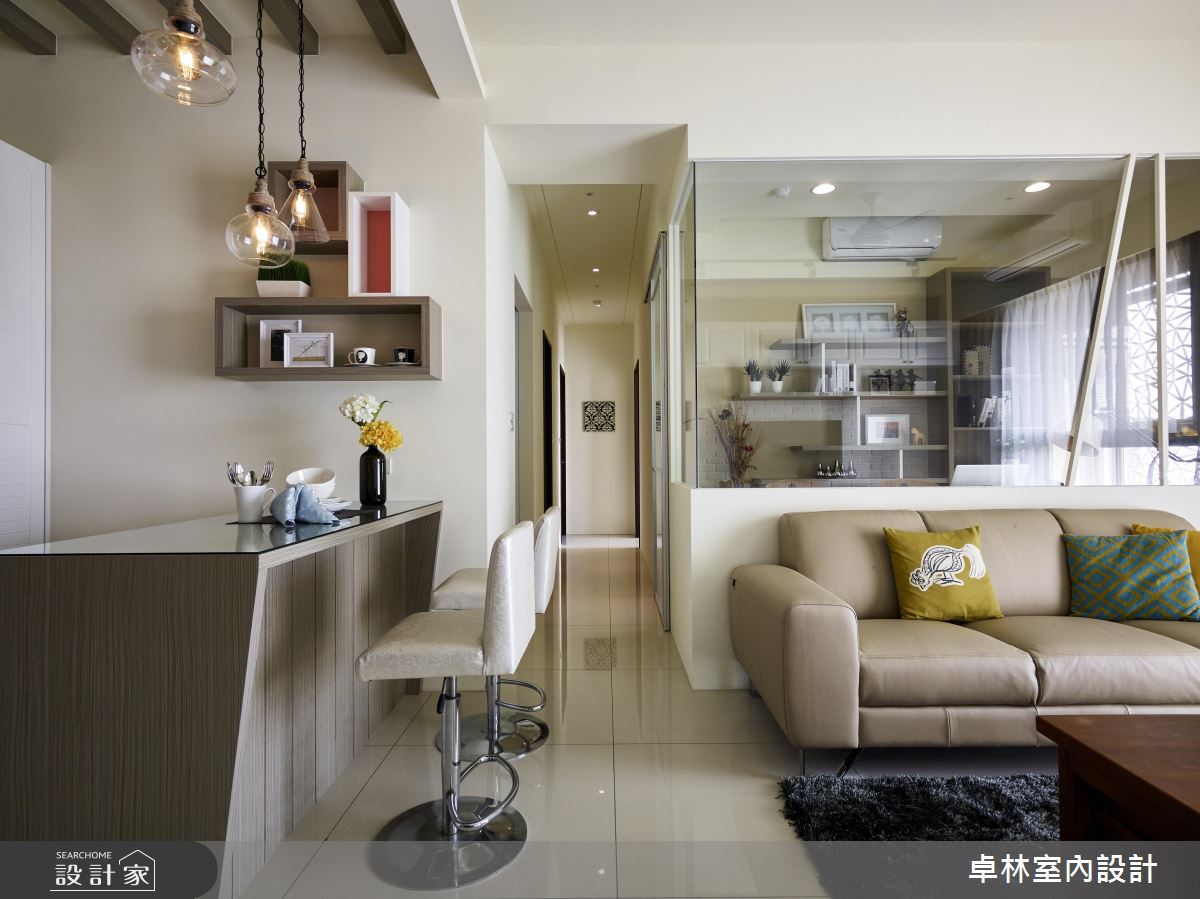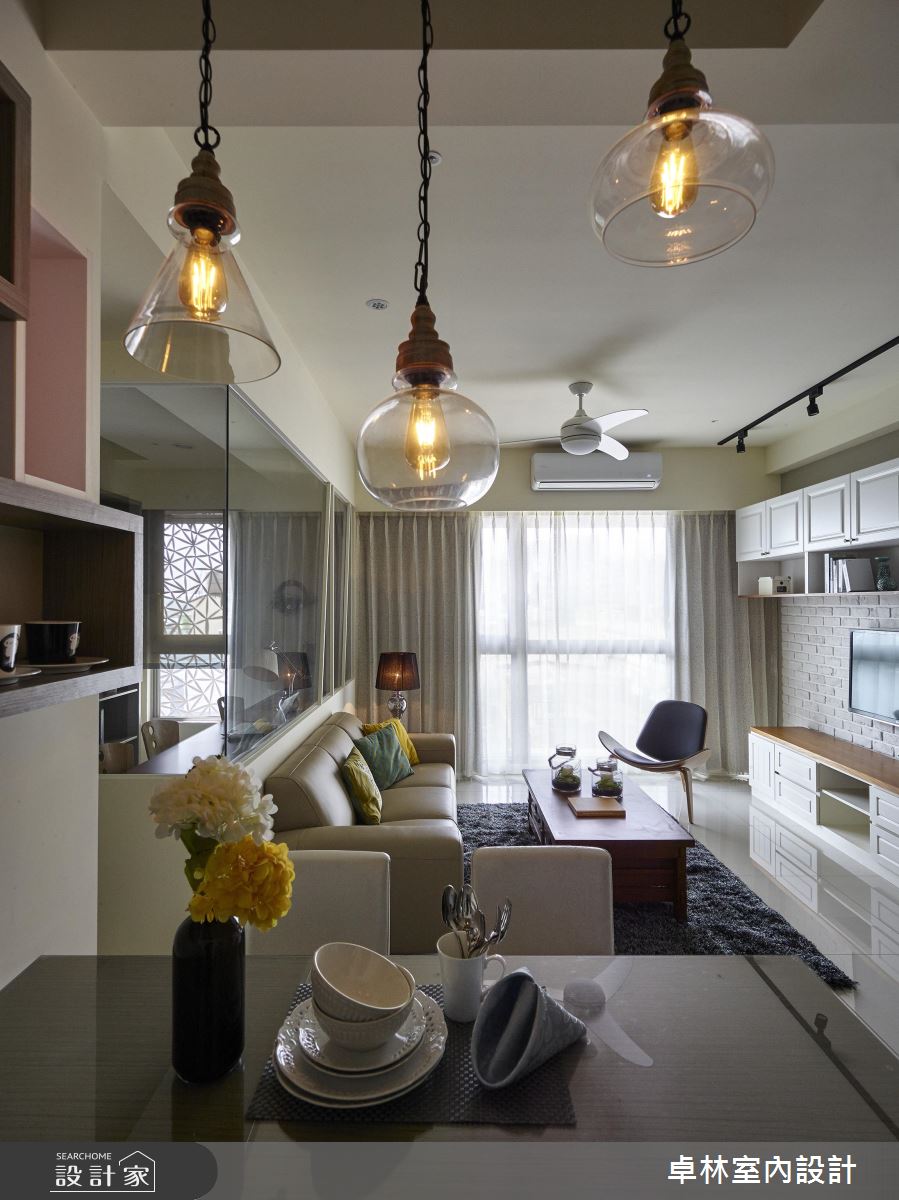 走進 28 坪的單層住宅,以清新明亮的美式調性為主軸,運用文化石與美式線板門片,加上簡潔溫暖的色調,以及頗具藝術個性的端景牆,調製出屬於家的溫馨和時尚質感。